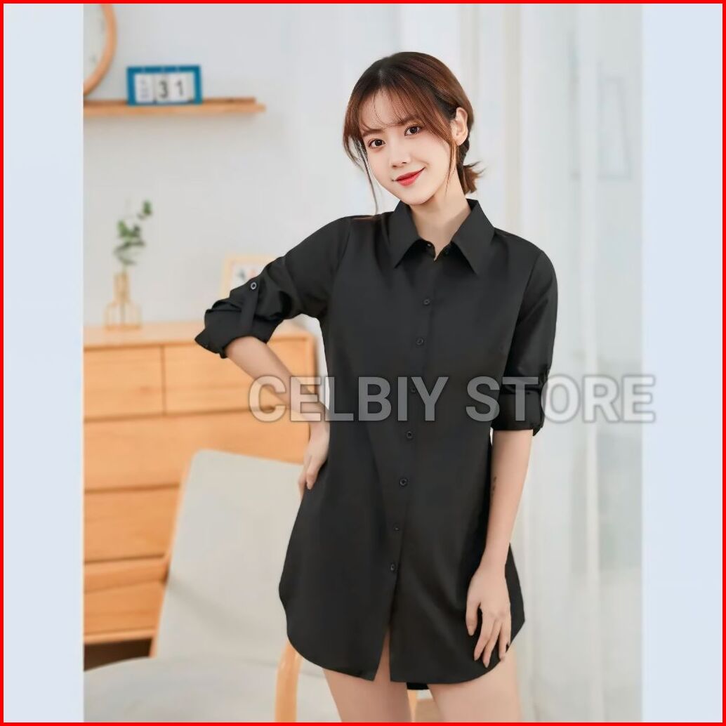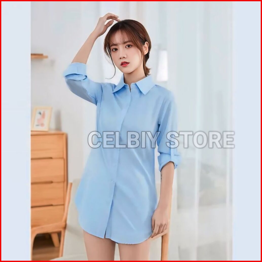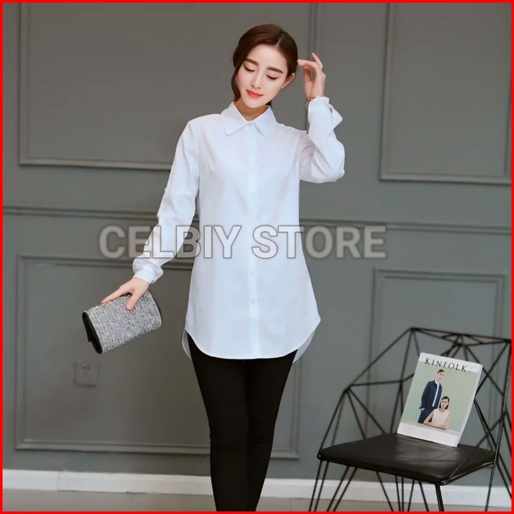 Kemeja Wanita Lengan Panjang - Kemeja Basic Wanita - Kemeja Kerja Wanita - Hem Putih Wanita - Baju Kantor Wanita Korean