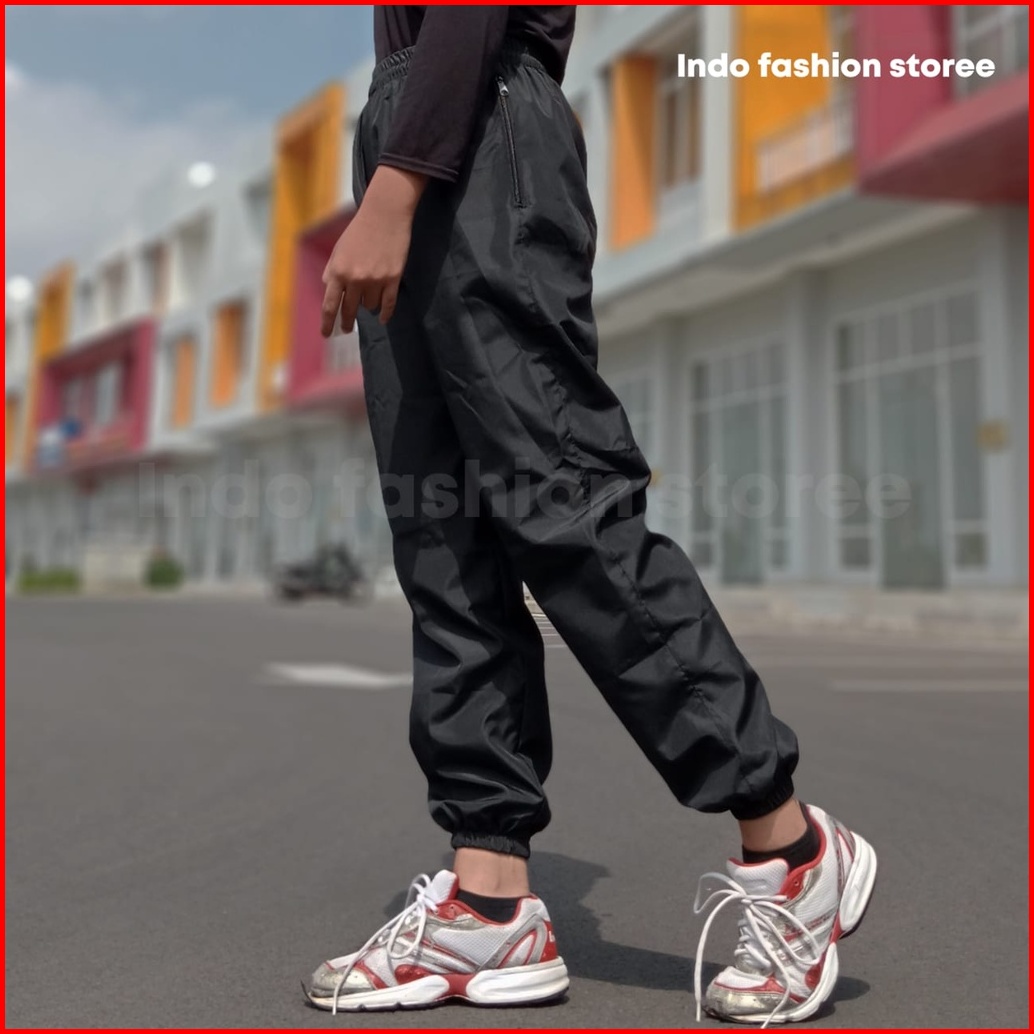 Celana Running Parasut Panjang Saku Resleting Celana Running Panjang