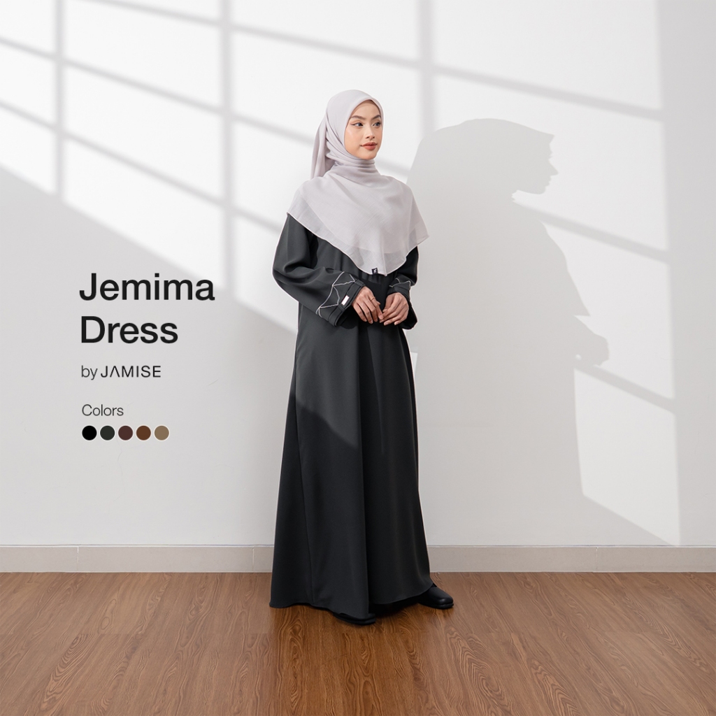 Jamise | Jemima Dress - Abaya Loose Detail Lengan Embroidery Zigzag Dan Variasi Loop
