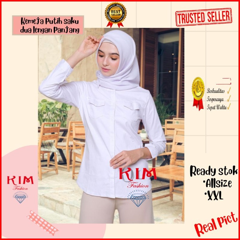 Kimfashion209 - Atasan Kemeja Wanita Putih Formal Kemeja Putih Wanita Saku 2 Qg