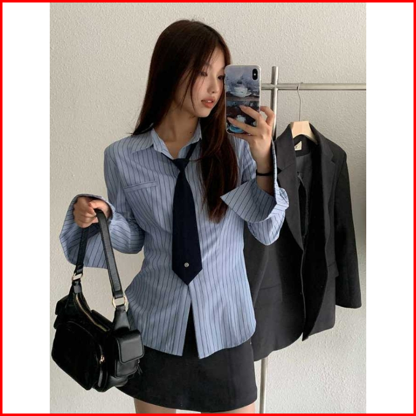 2toyoung Luna Stripe Kemeja Kemeja Fitted Fitted Shirt Kemeja Kerja Wanita Kemeja Lengan Panjang Kemeja Katun Wanita Str