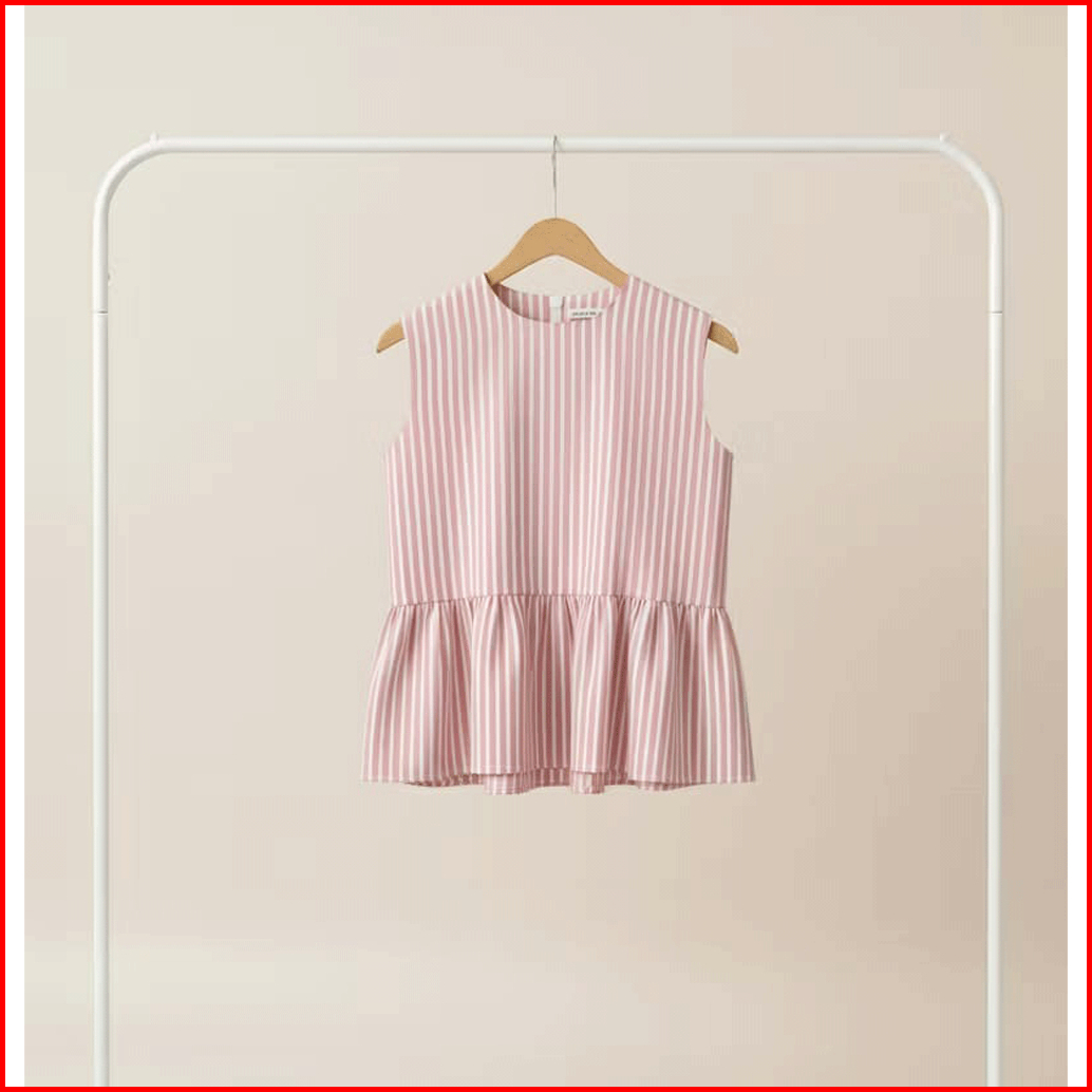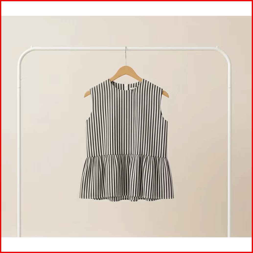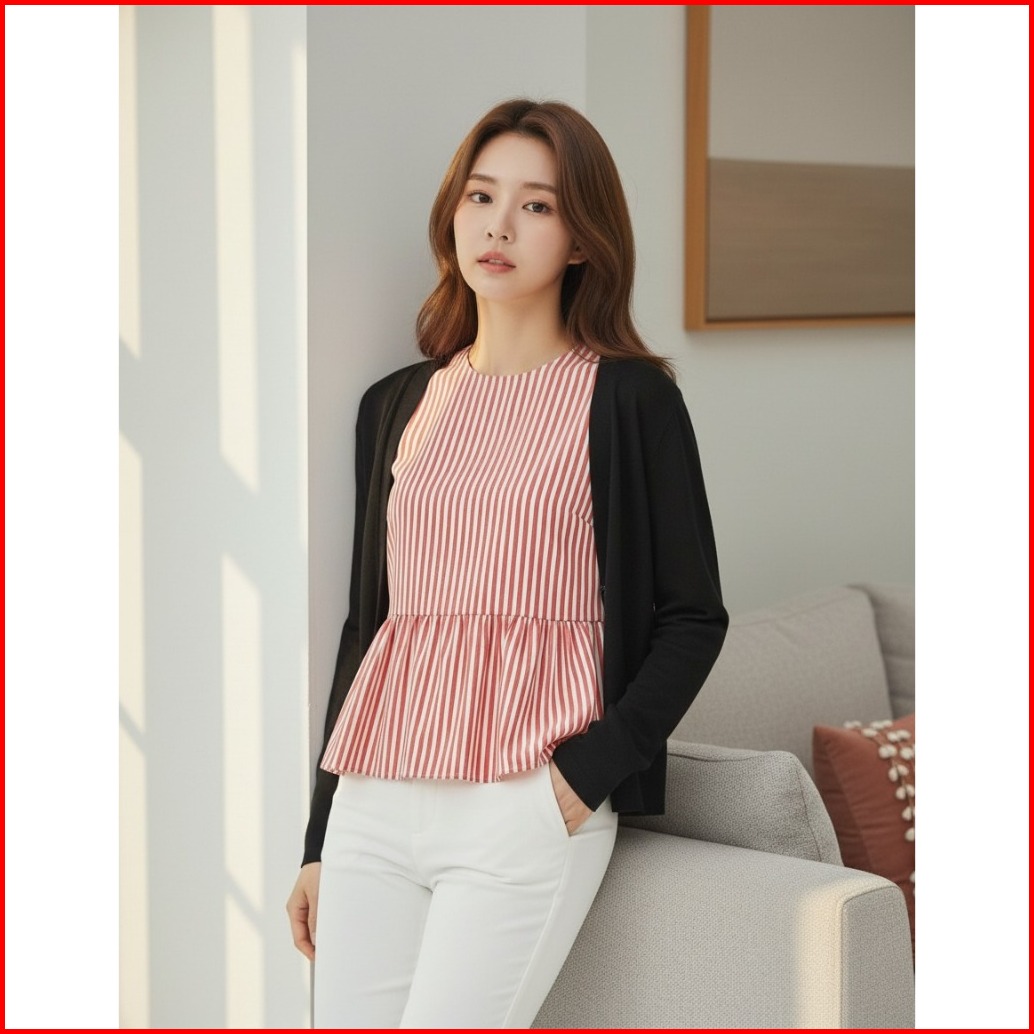 Kani Female Fashion - Amora Vest Inner Peplum Top Inner Cardigan Stripe Blouse Top Korean Style