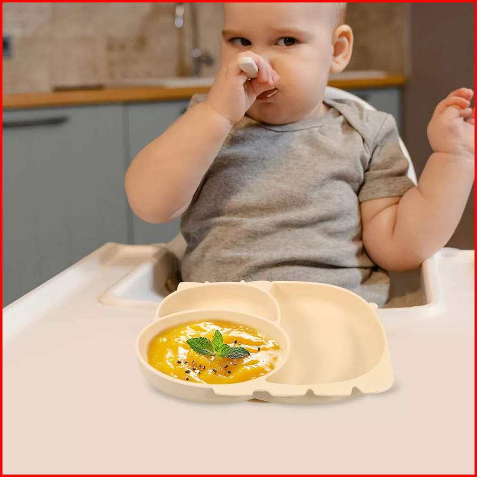 Ultra Piring Silicone Baby Model Sapi Piring Makan Anak 3 Sekat Lucu Dan Mudah Dibersihkan