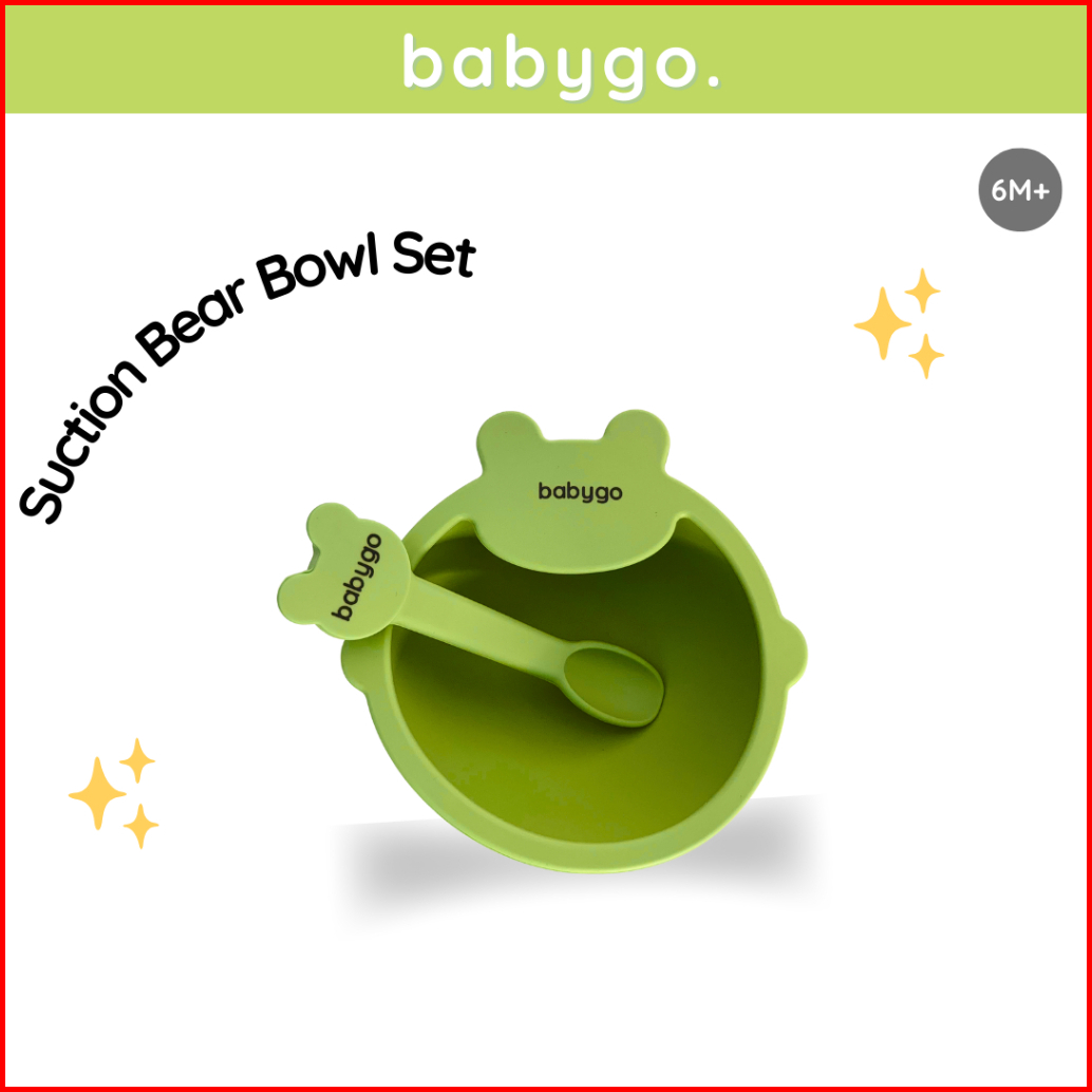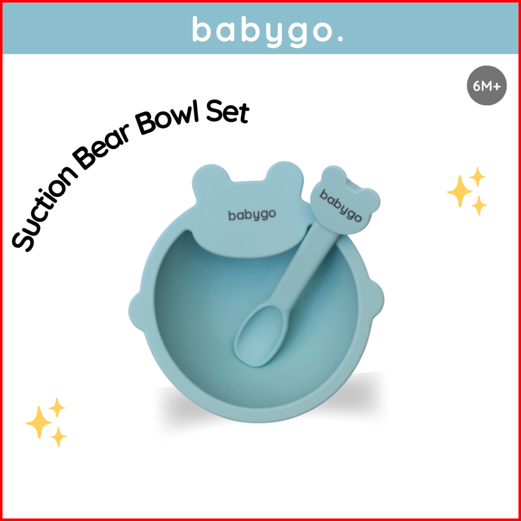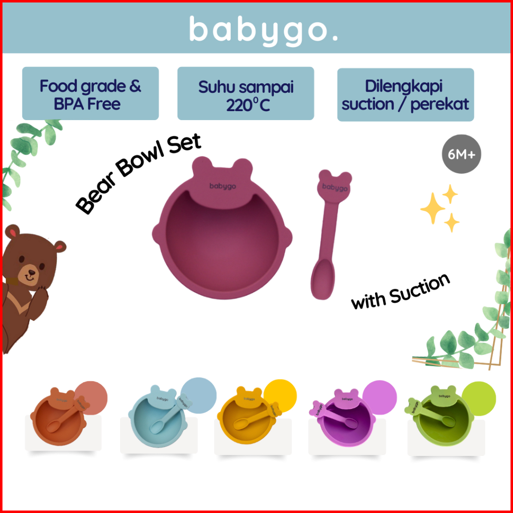 Babygo Mangkok Silikon Bayi Silicone Baby Set Silicone Suction Bowl Anak Piring Sendok Silicone Baby Peralatan Makan Mpa
