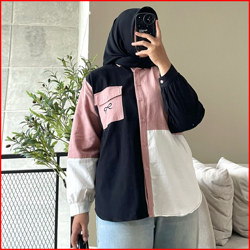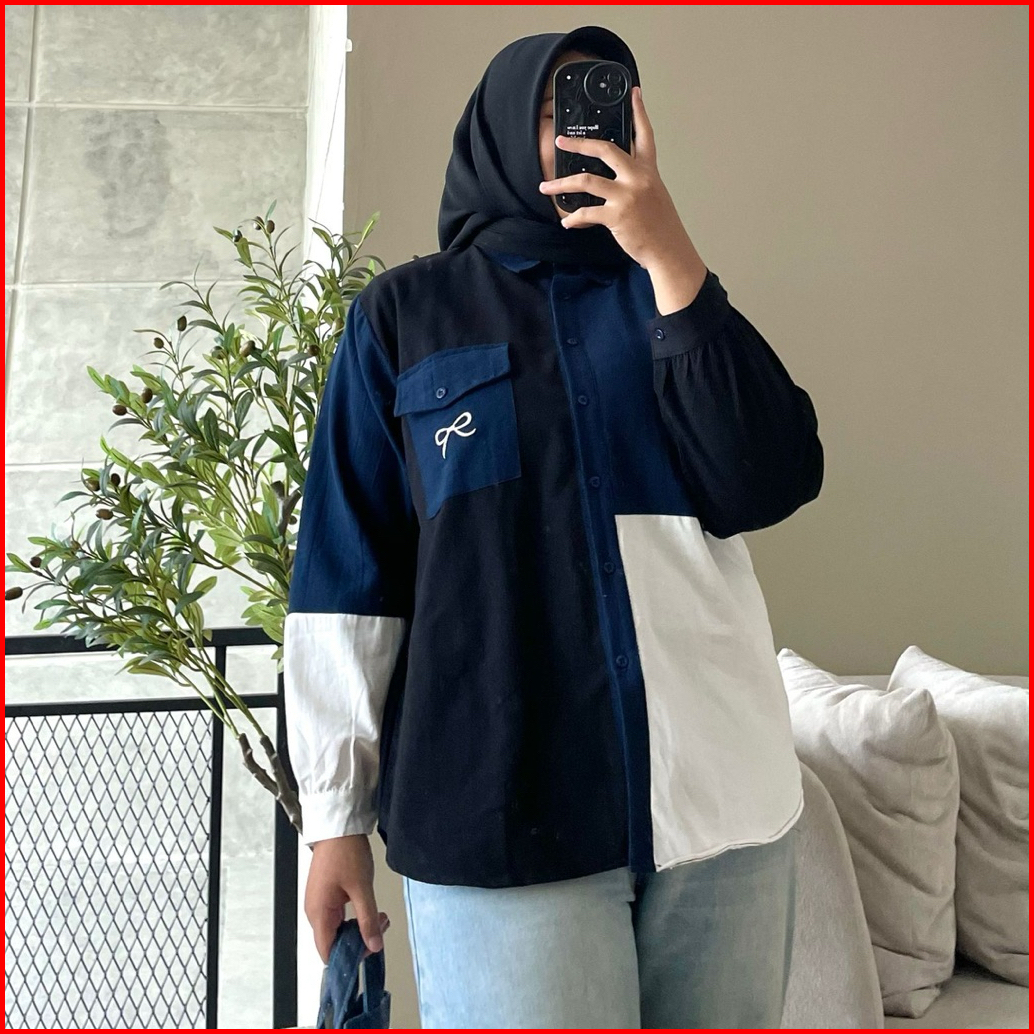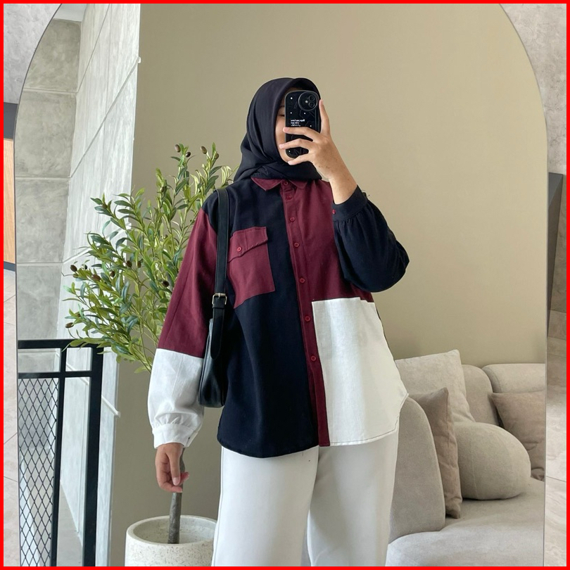 Hanako 768 Kemeja Oversize Linen Kombinasi Kemeja Wanita