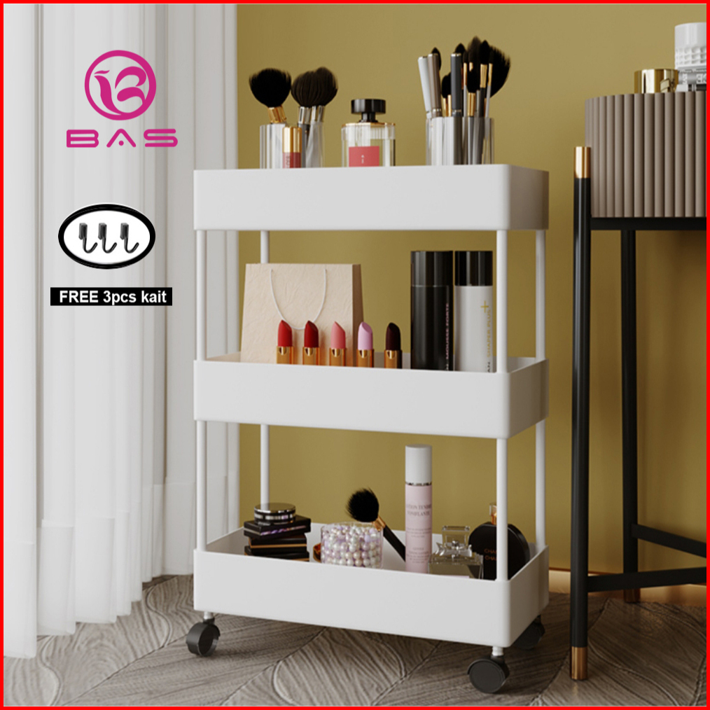 Bas Square Rak Dapur Rak Troli Rak Kamar Mandi Rak Serbaguna 3 Tingkat Dengan Roda