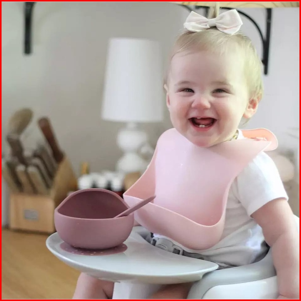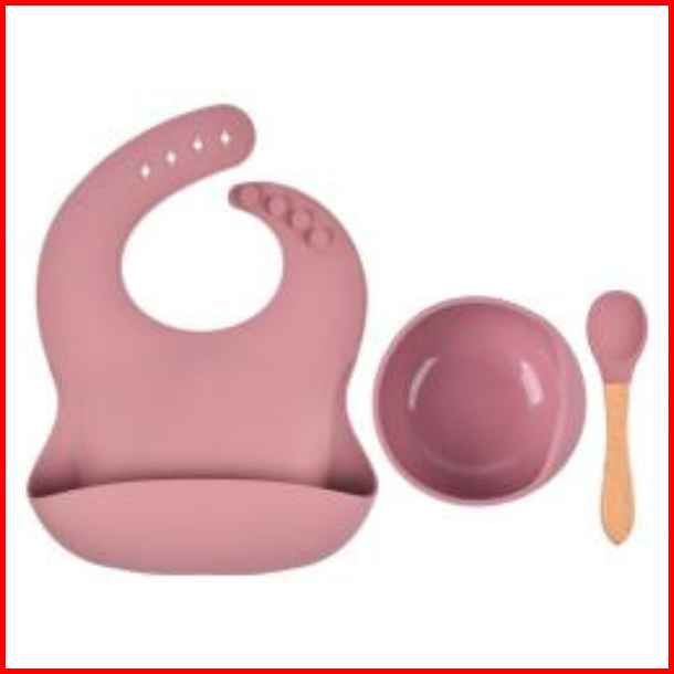 3 Buah Set Peralatan Makan Bayi Silikon Bib Mangkok Sendok Piring Food Grade