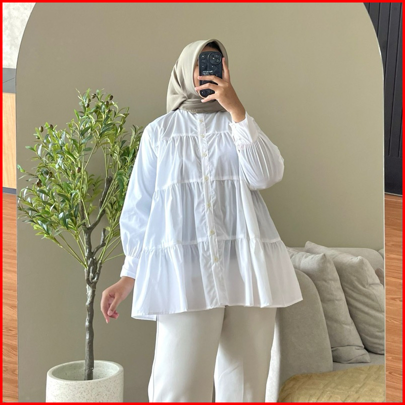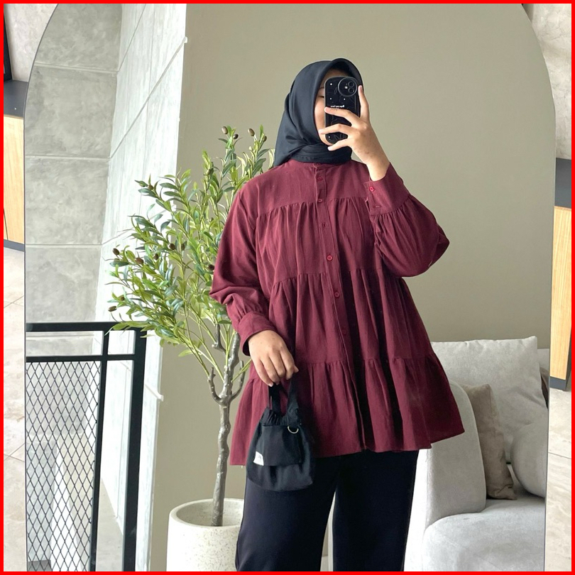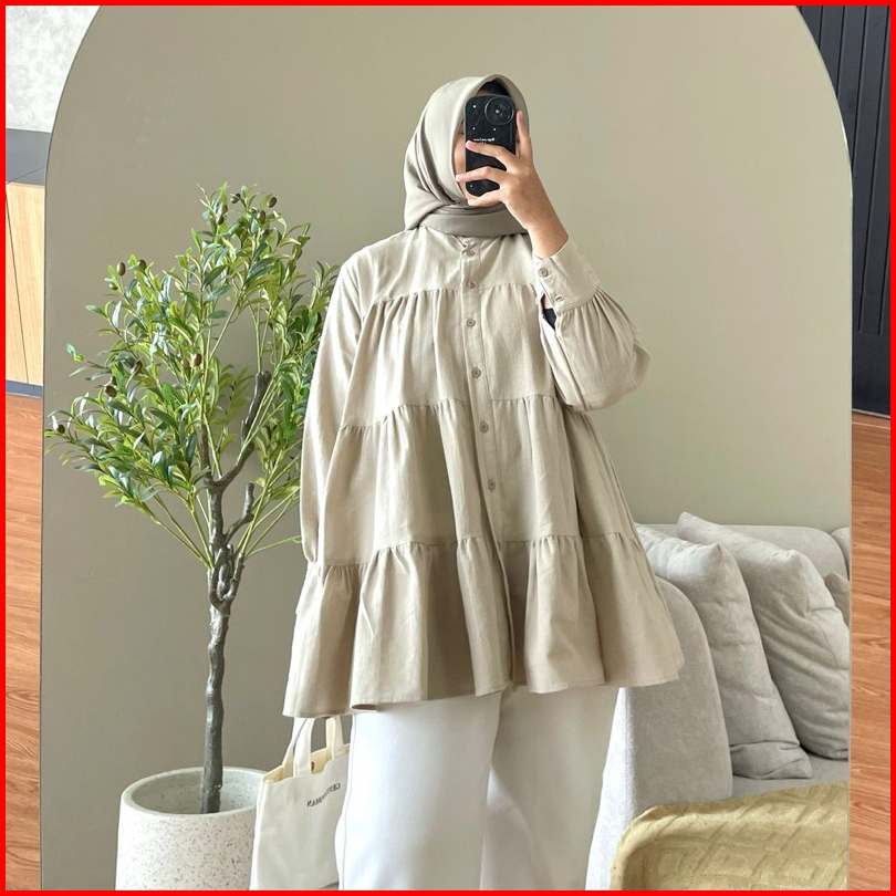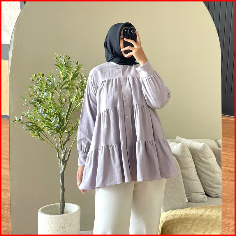 Hanako 18 Linen Shirt Kemeja Wanita Rempel Polos Kemeja Kerah Shanghai Blus Wanita