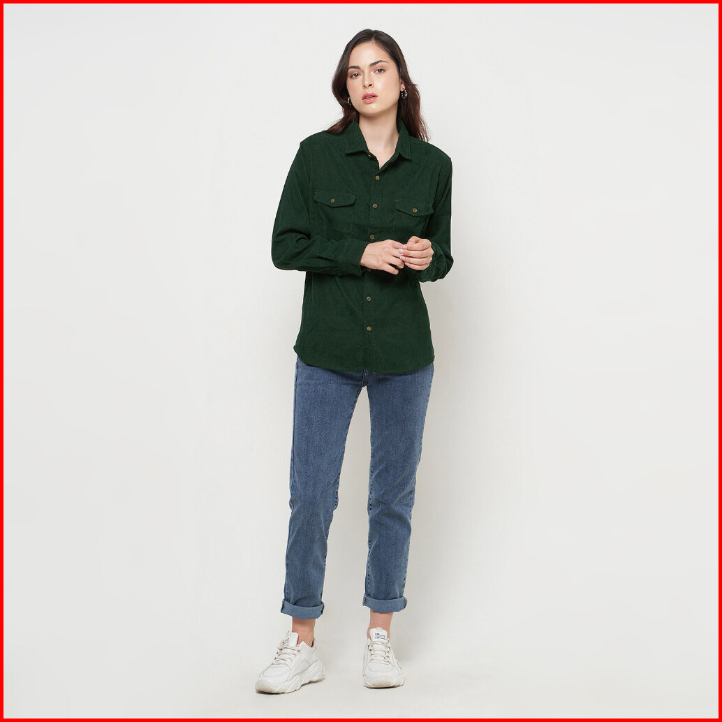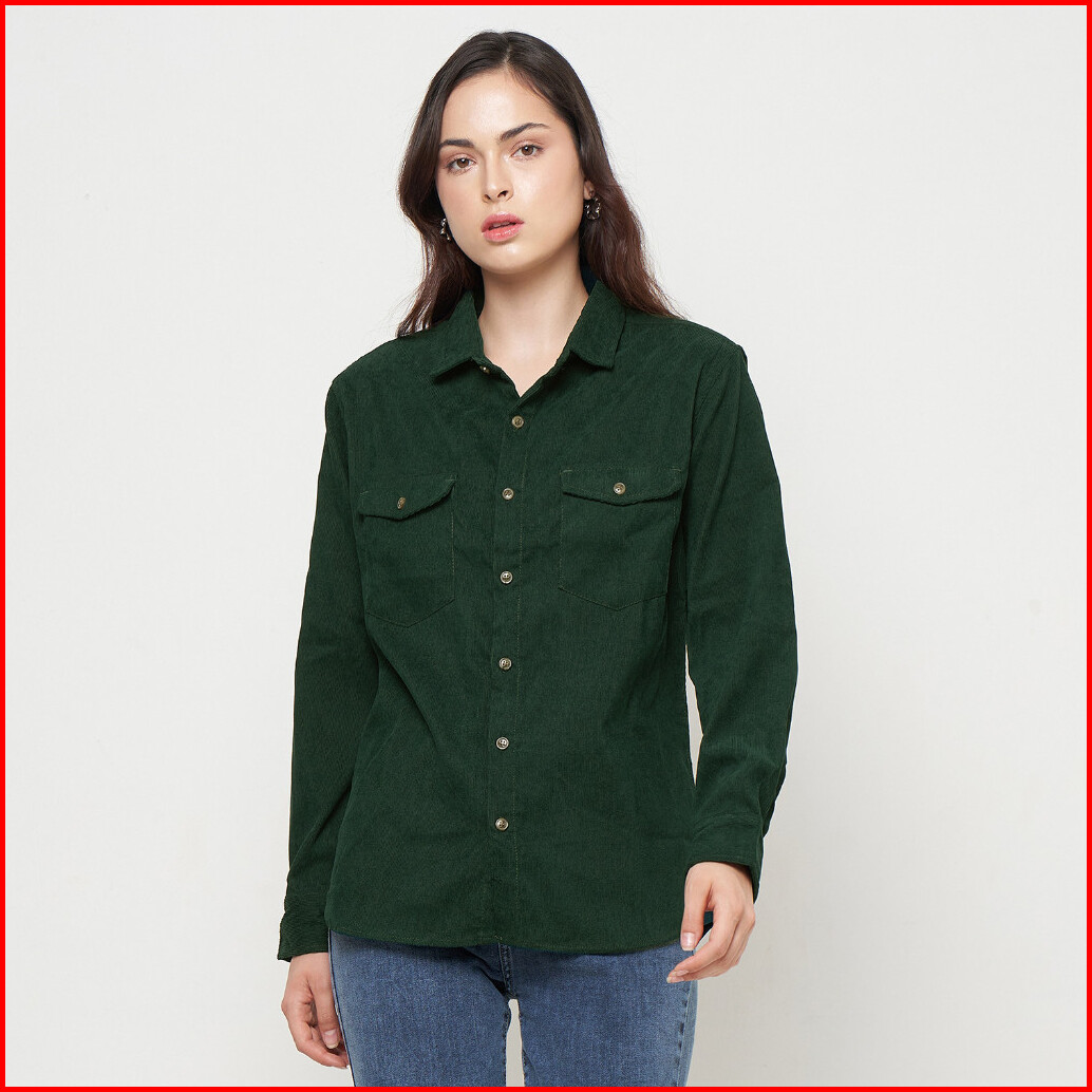 Kemeja Wanita Kodorai Lengan Panjang Kantong Dua Hijau Olr274