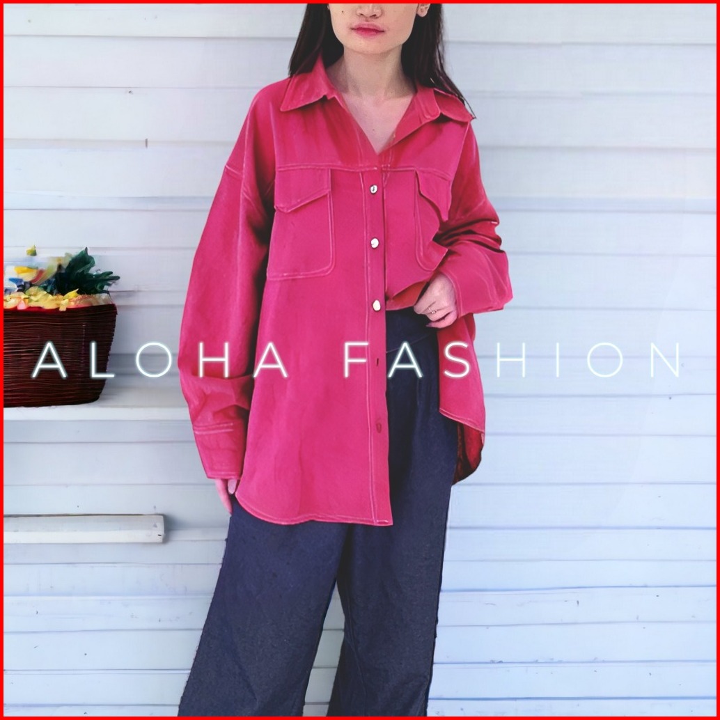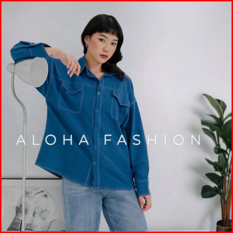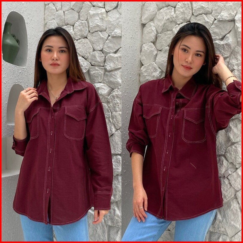 Af - 2103 Keisha Linen List Oversize Kemeja List Linen Oversize Wanita Kemeja Kekinian