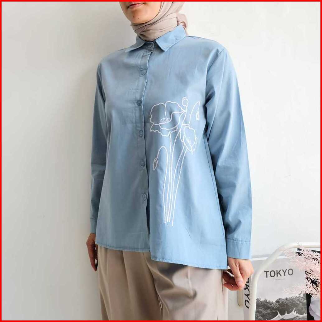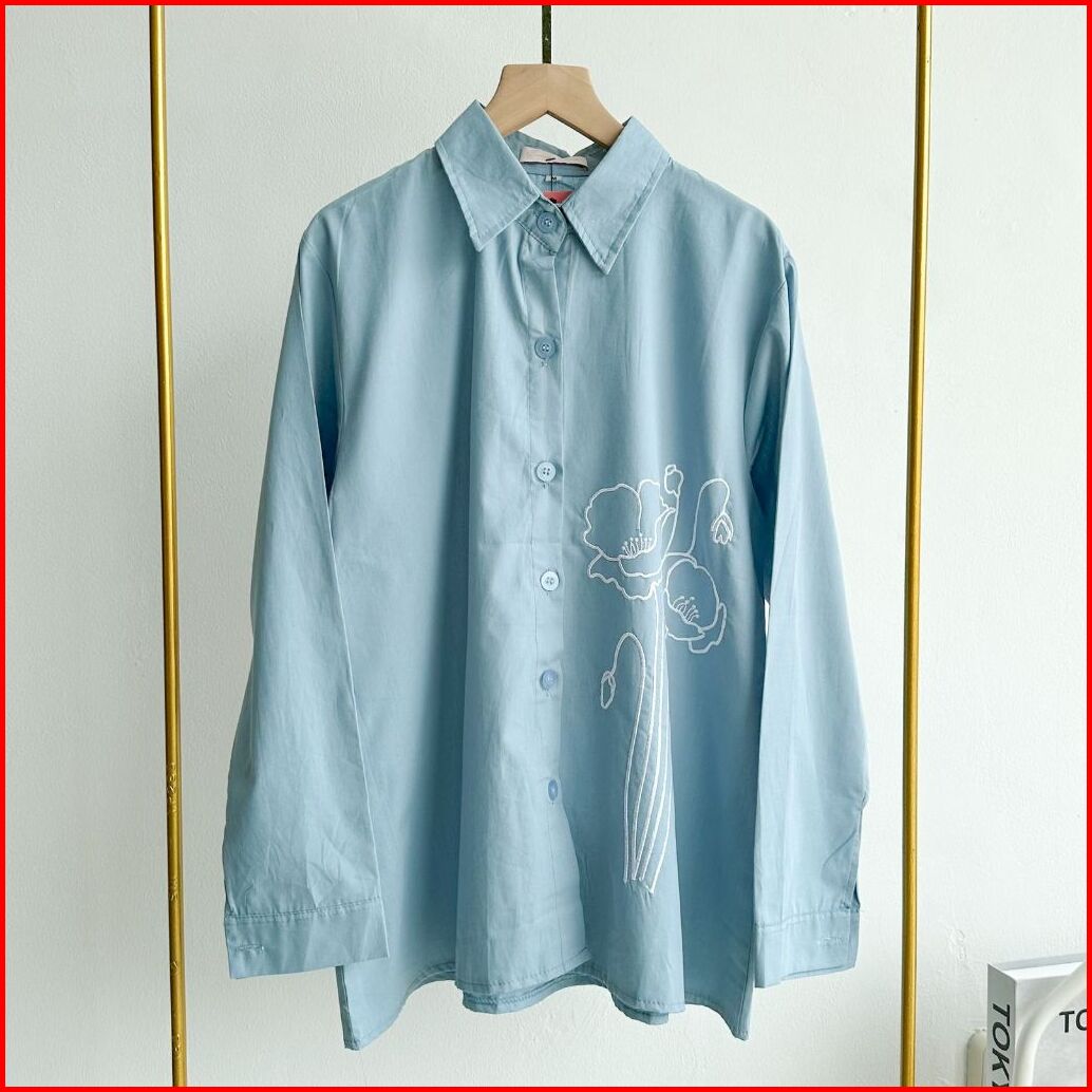 Emikoawa Tikha Kemeja Poplin Basic Wanita Border Embroidery Bunga Atasan Wanita Kemeja Putih