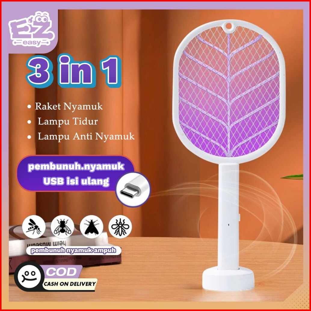 Ez Raket Nyamuk Raket Nyamuk Listrik 3in1 Charger Usb Lampu Tidur Lampu Anti Nyamuk 3 Lapisan Pengaman Tidur Malam Yang