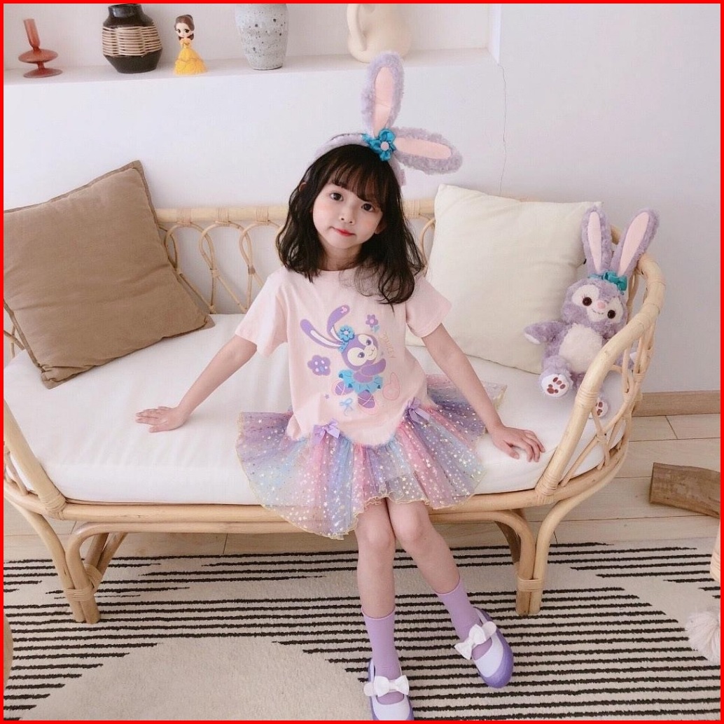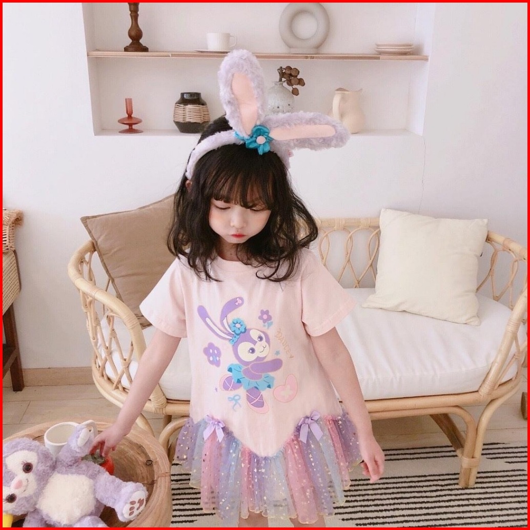 Princess Kesli 1-9 Tahun Gaun Anak Perempuan Pakaian Anak-anak Musim Panas Anak-anak Bergaya Kartun Temperamen Rok Jala