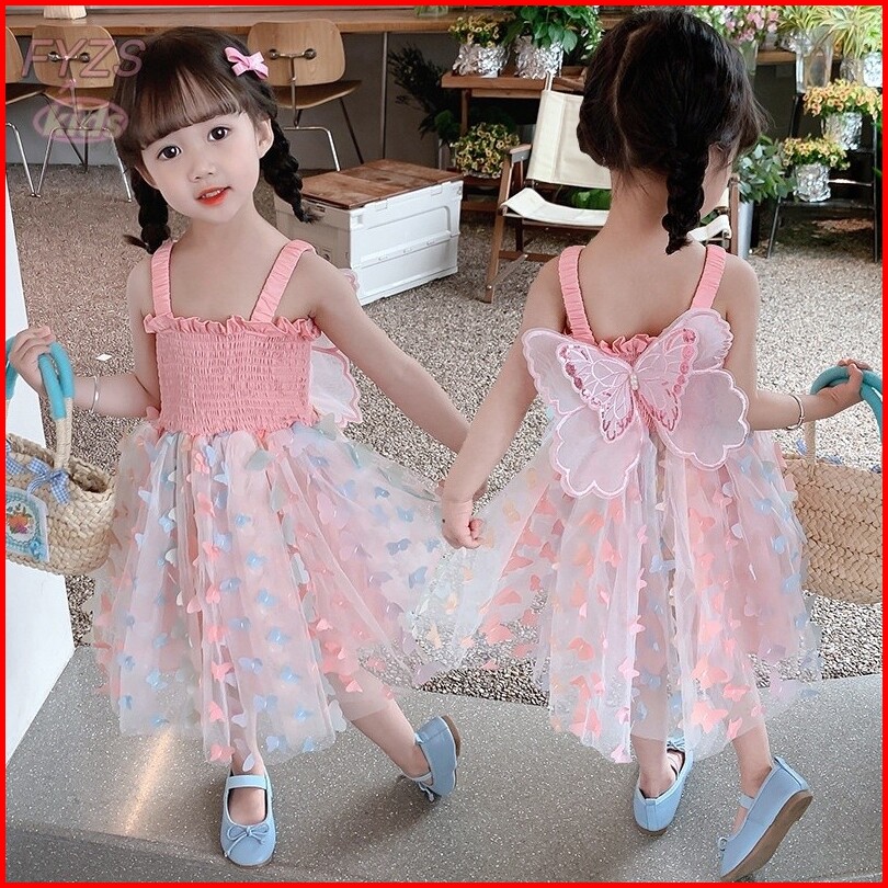 Fyzskids 1-6 Tahun Gaun Gadis Baru Modis Kepribadian Trendi Harta Wanita Gaun Peri Kupu-kupu Kasual Korea