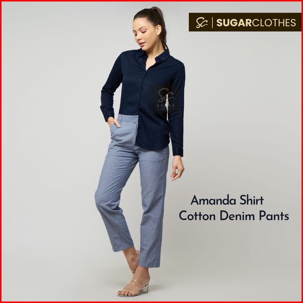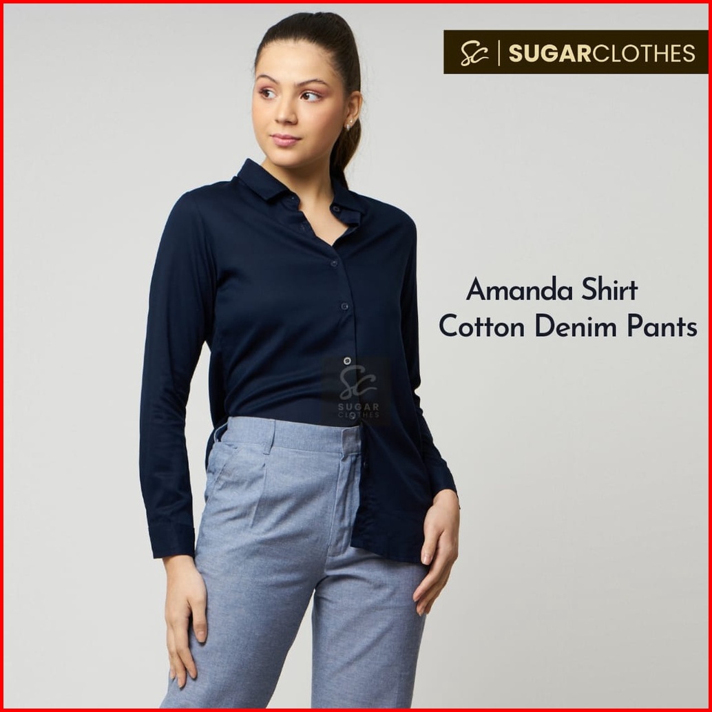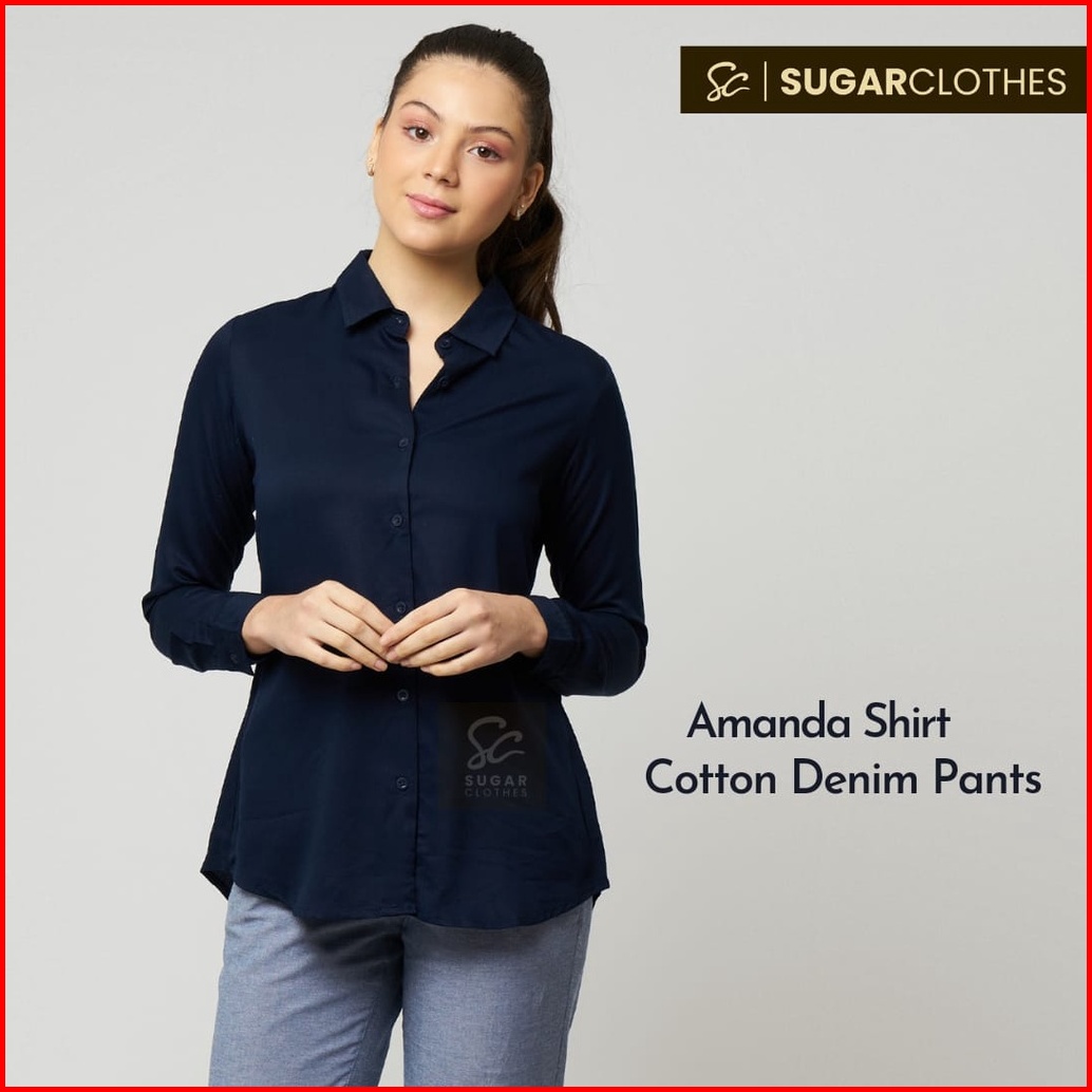 Kemeja Wanita Warna Biru Tua Navy Baju Atasan Wanita Amanda Shirt Navy