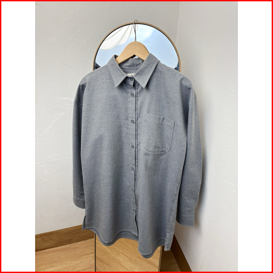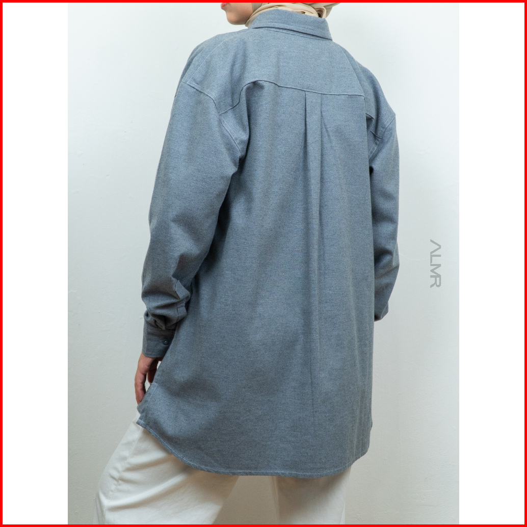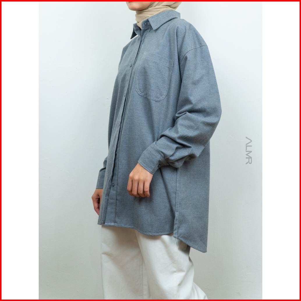 Almr - Cool Gray Oversize Kemeja Oversize Cewek Kemeja Abu Wanita Kemeja Jumbo Wanita