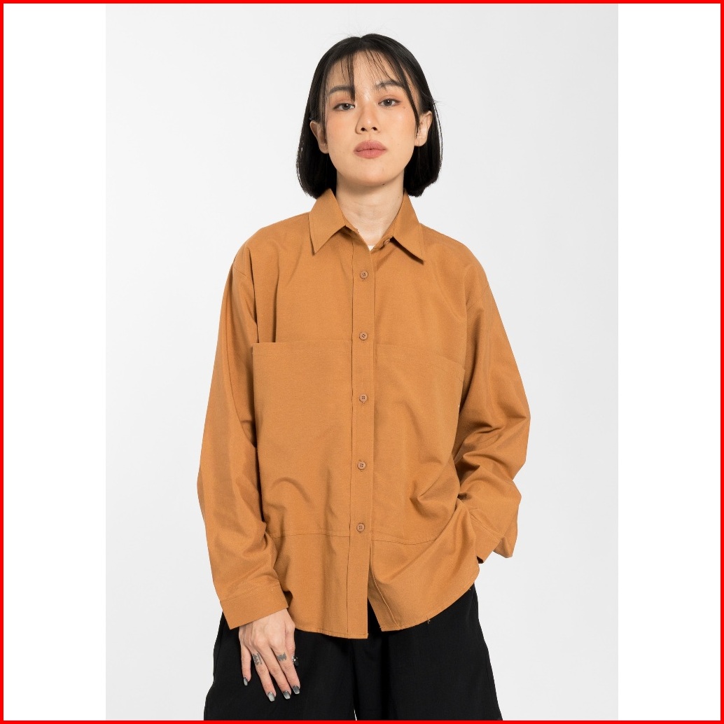 Malova Alicia Kemeja Wanita Atasan Wanita Lengan Panjang Saku Besar Bahan Katun Linen Premium