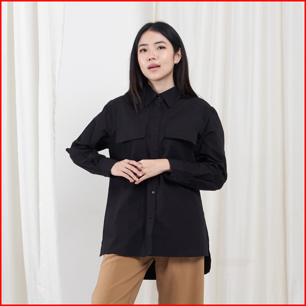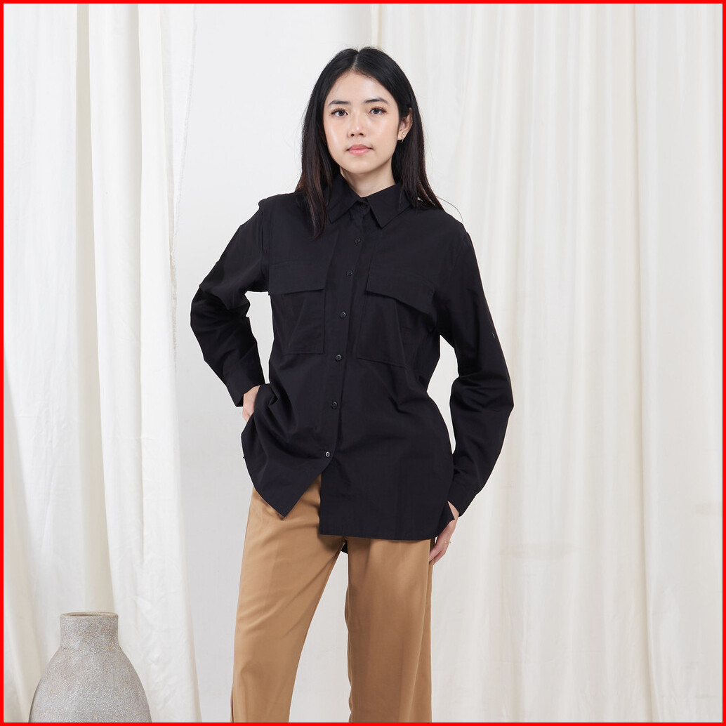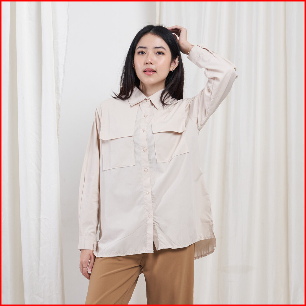 Queentin Kemeja Wanita Casual 0080 Katun Poplin Polos Lengan Panjang