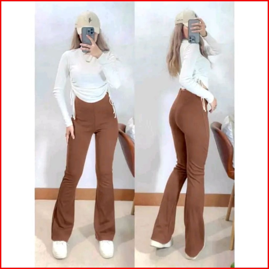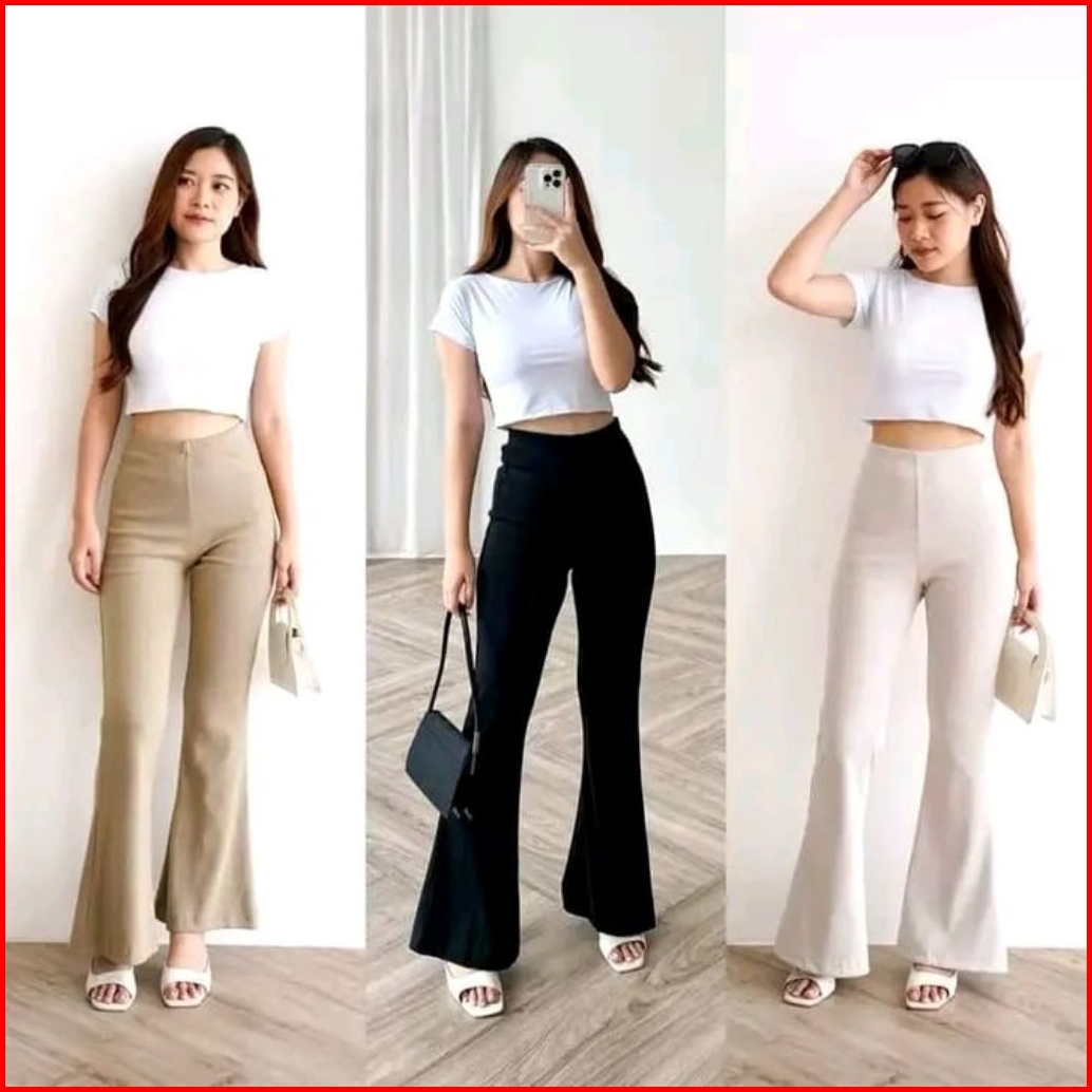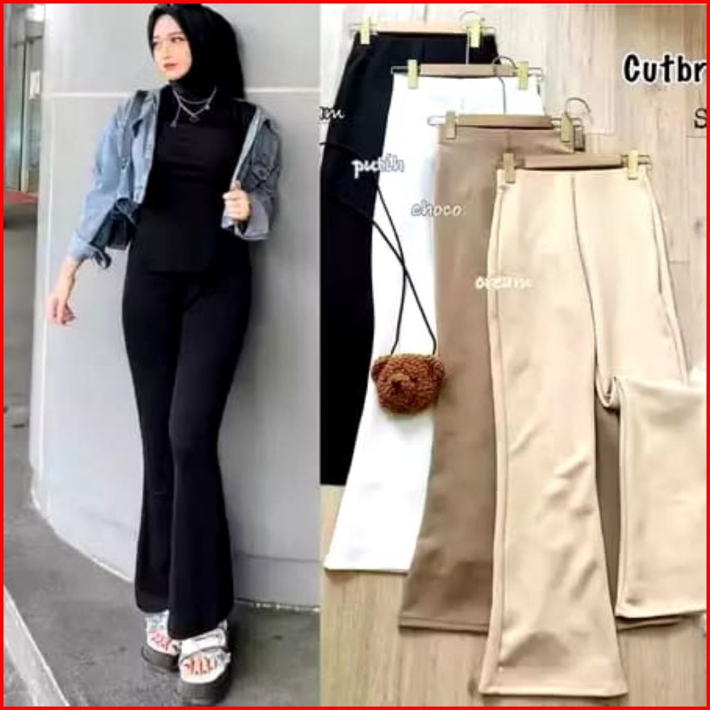 Celana Cutbray Wanita Fit And Flare Pants Cutbray Scuba Pinggang Highwaist Bahan Stretch