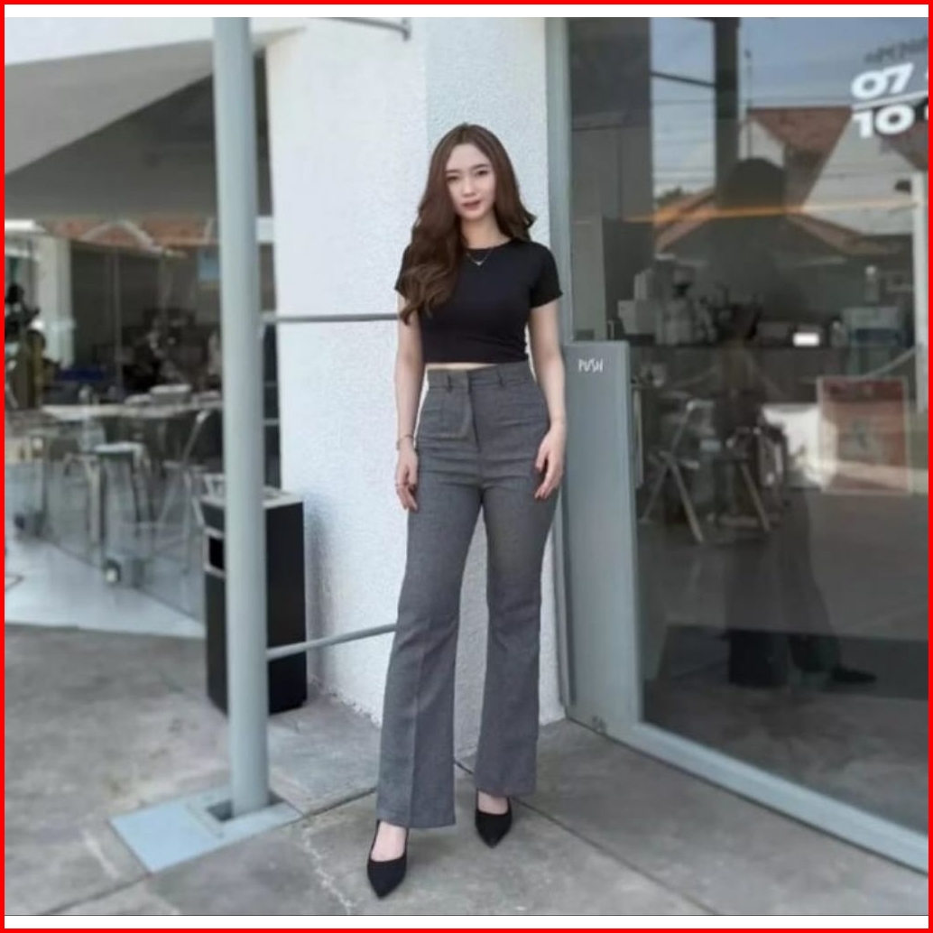 Saleen - Kylie Cutbray Highwaist Pants Korean Wanita Panjang Anti Kusut Kylie Cutbray Flare Pants