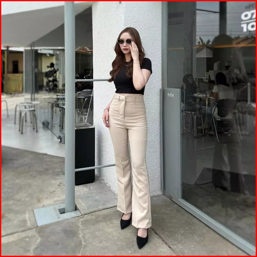 Havah - Kylie Cutbray Highwaist Pants - Celana Cutbray Flarepants Wanita Semi Wool