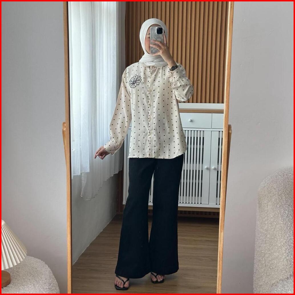 Keura Shirt Kemeja Basic Motif Polkadot Bordir
