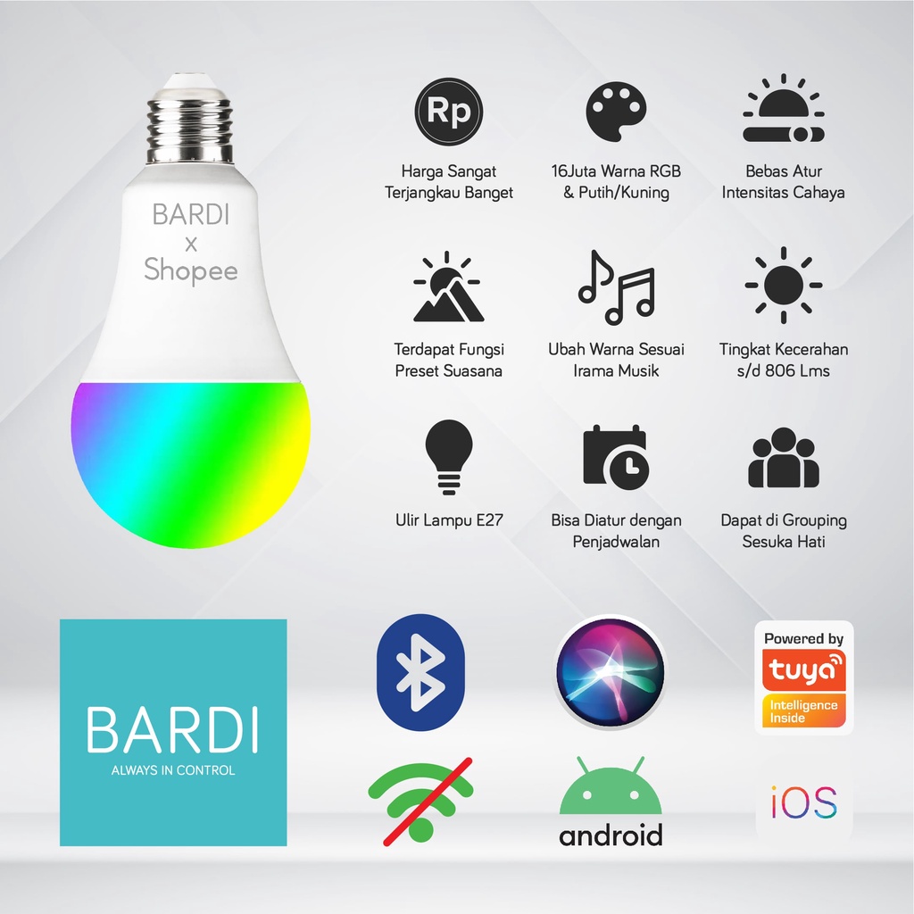 BARDI Smart LED BLUETOOTH 9W RGBWW Bulb - lampu tidur terbaik
