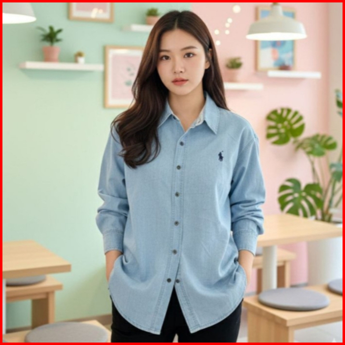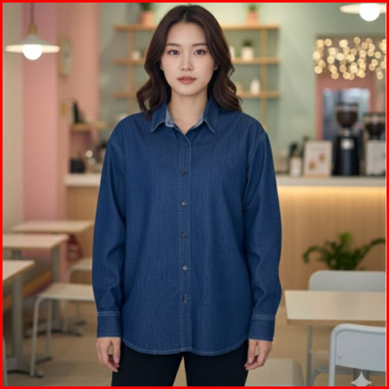 Kemeja Denim Wanita - Kemeja Jeans - Kemeja Lengan Panjang - Atasan Wanita - Blouse Oversize Wanita - Kemeja Kantoran -