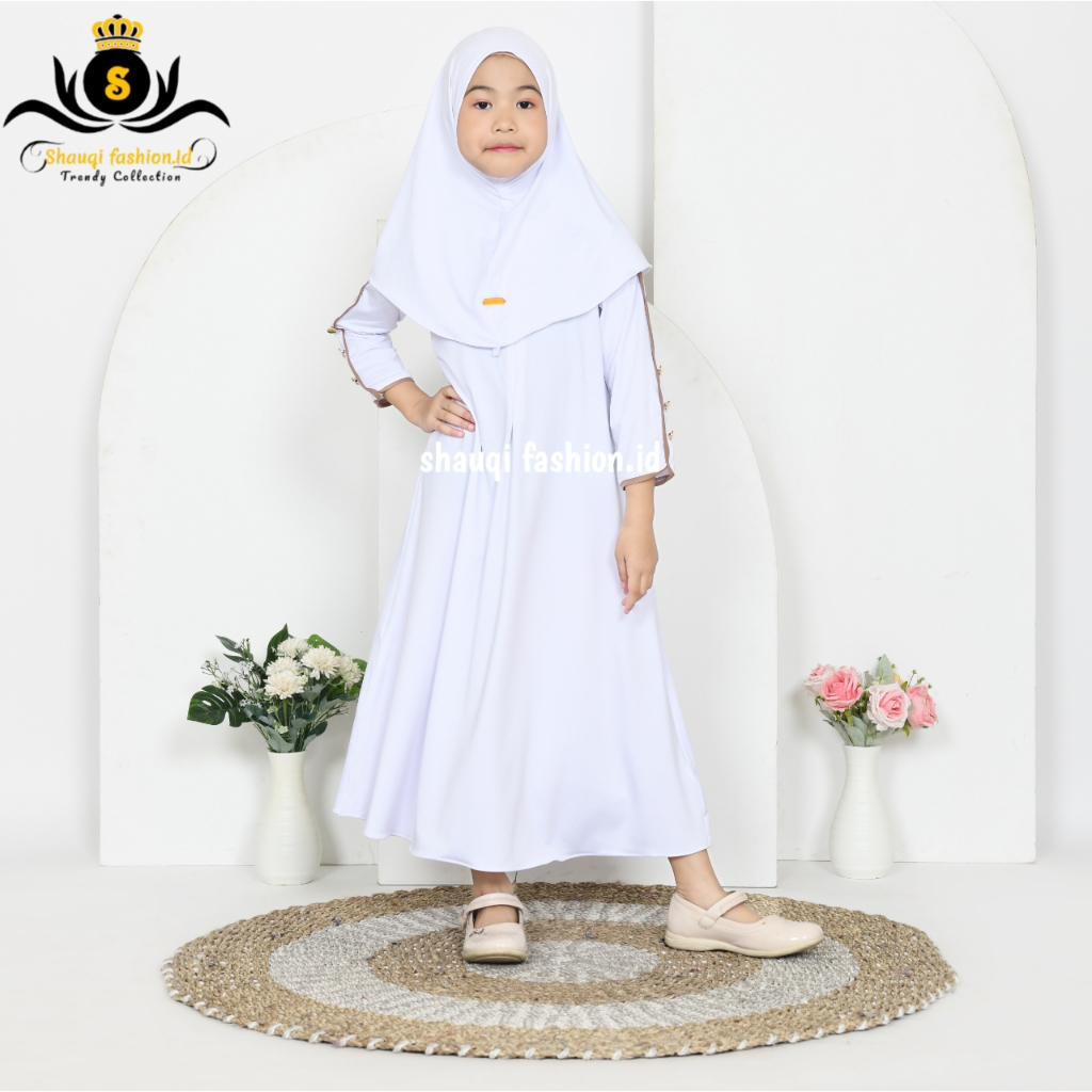 Gamis Anak Set Hijab / Abaya Anak / Gamis Anak Bahan Jersey / Gamis Putih Anak Perempuan