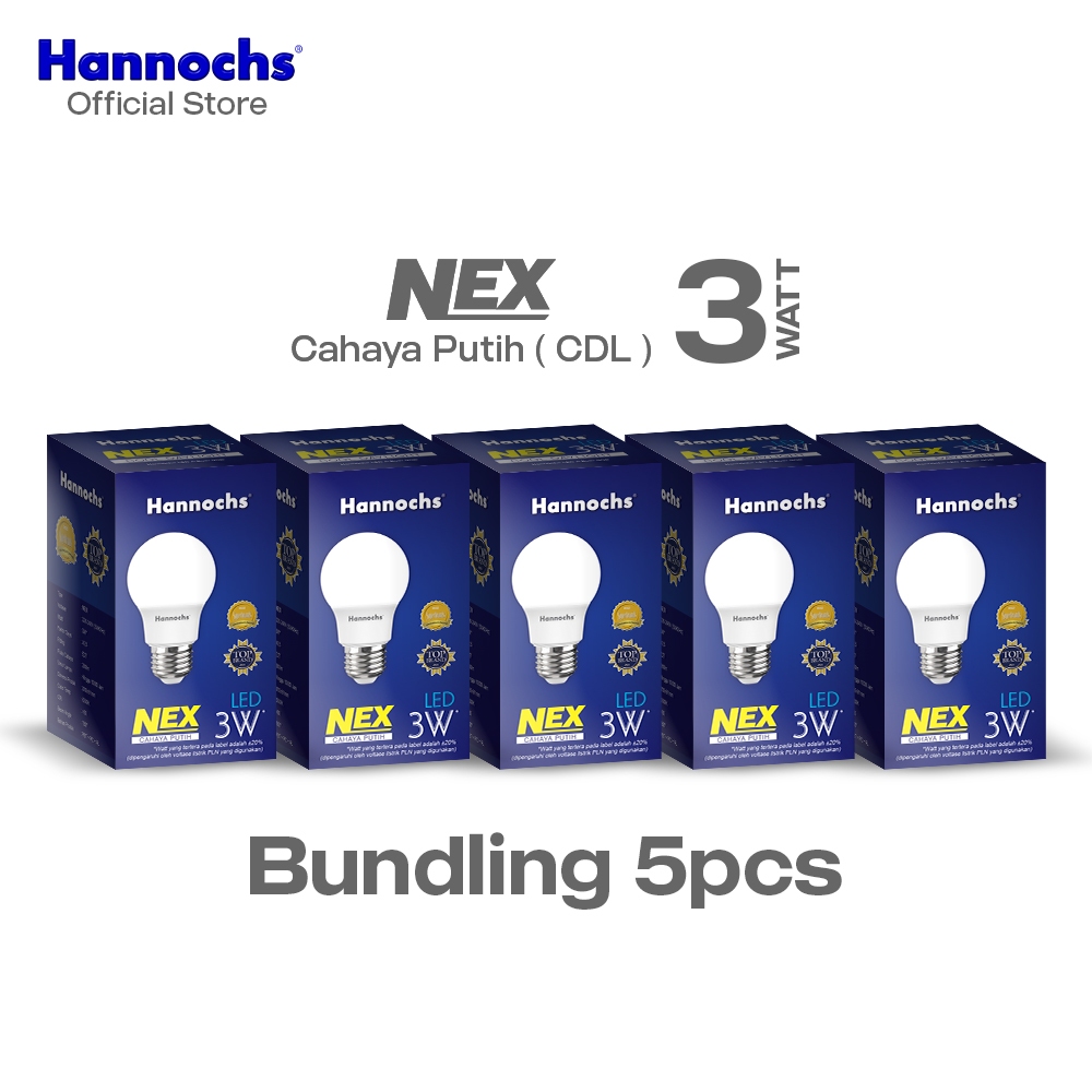 Hannochs Lampu Bohlam LED NEX 3W Cahaya Putih Paket isi 5pcs