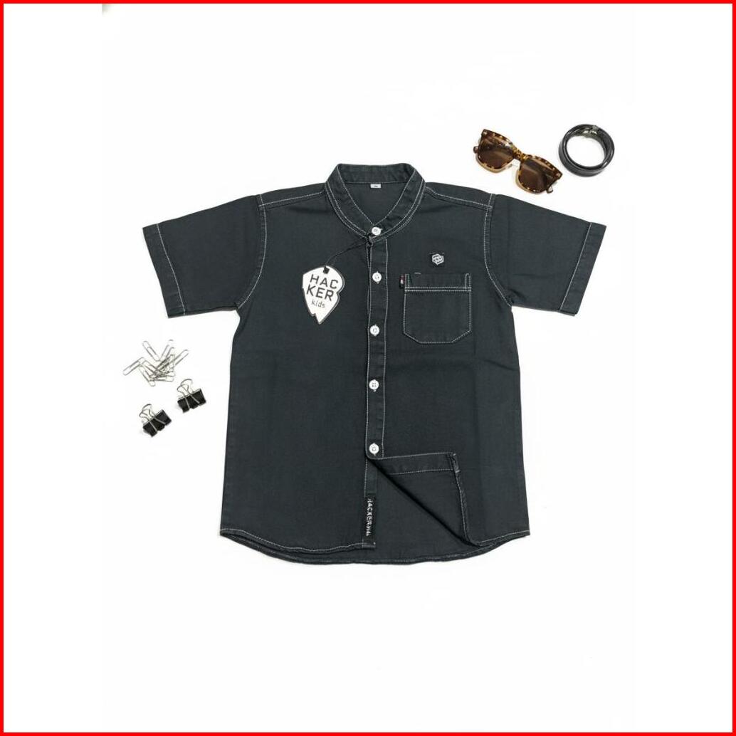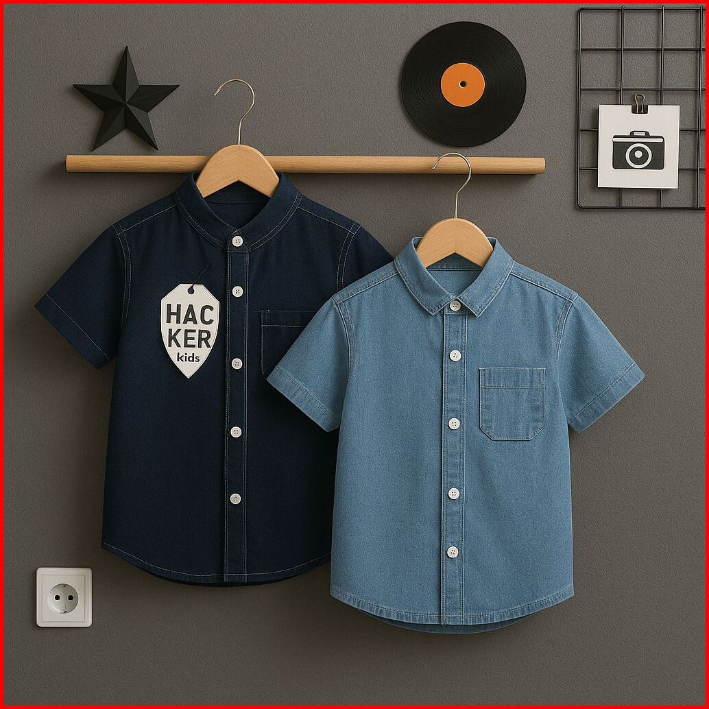 Kemeja Jeans Kerah Sanghai Lengan Pendek Usia 1 - 9 Tahun Kemeja Jeans Denim Outfit Anak Anak Masa Kini