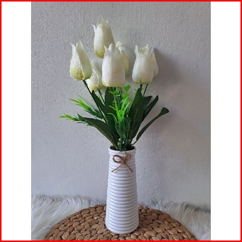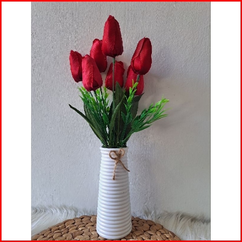 Bunga Hiasan Meja Bunga Tulip X6 Pot Melamin Ulir