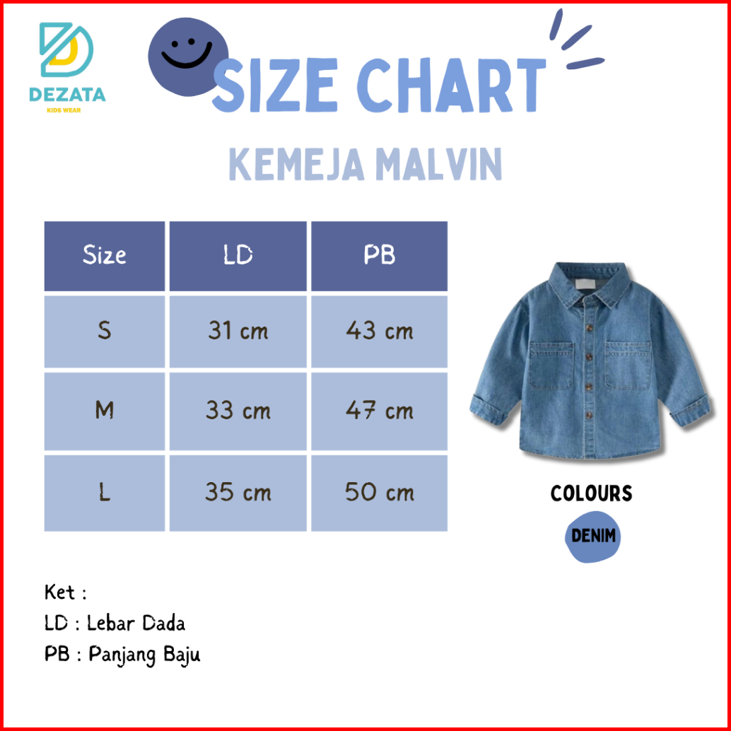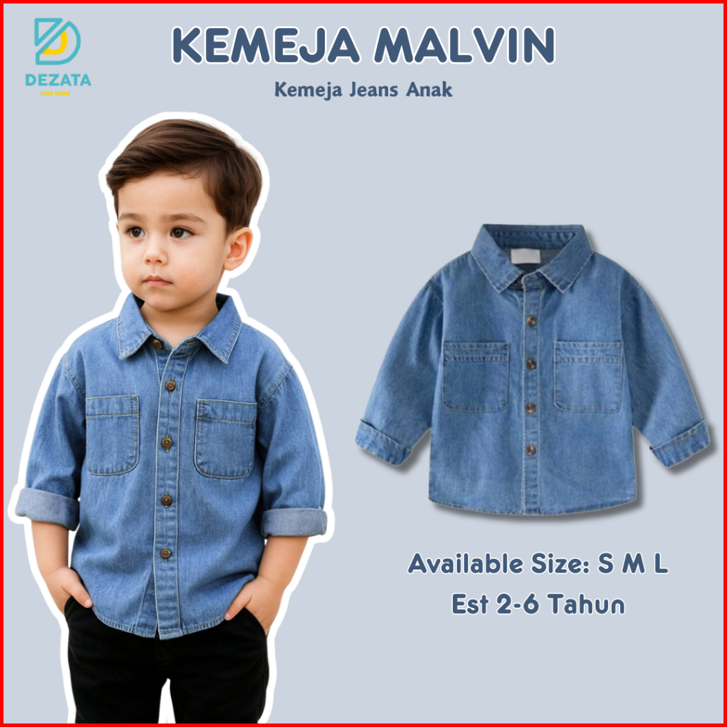 Dezata Malvin - Kemeja Jeans Anak 2-6 Tahun Atasan Anak Laki Laki Kemeja Anak Laki Laki Kemeja Anak