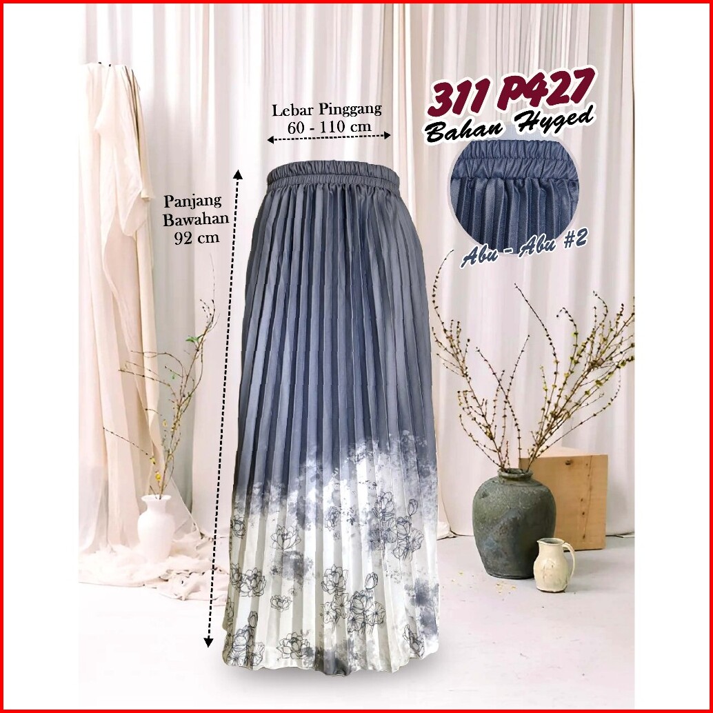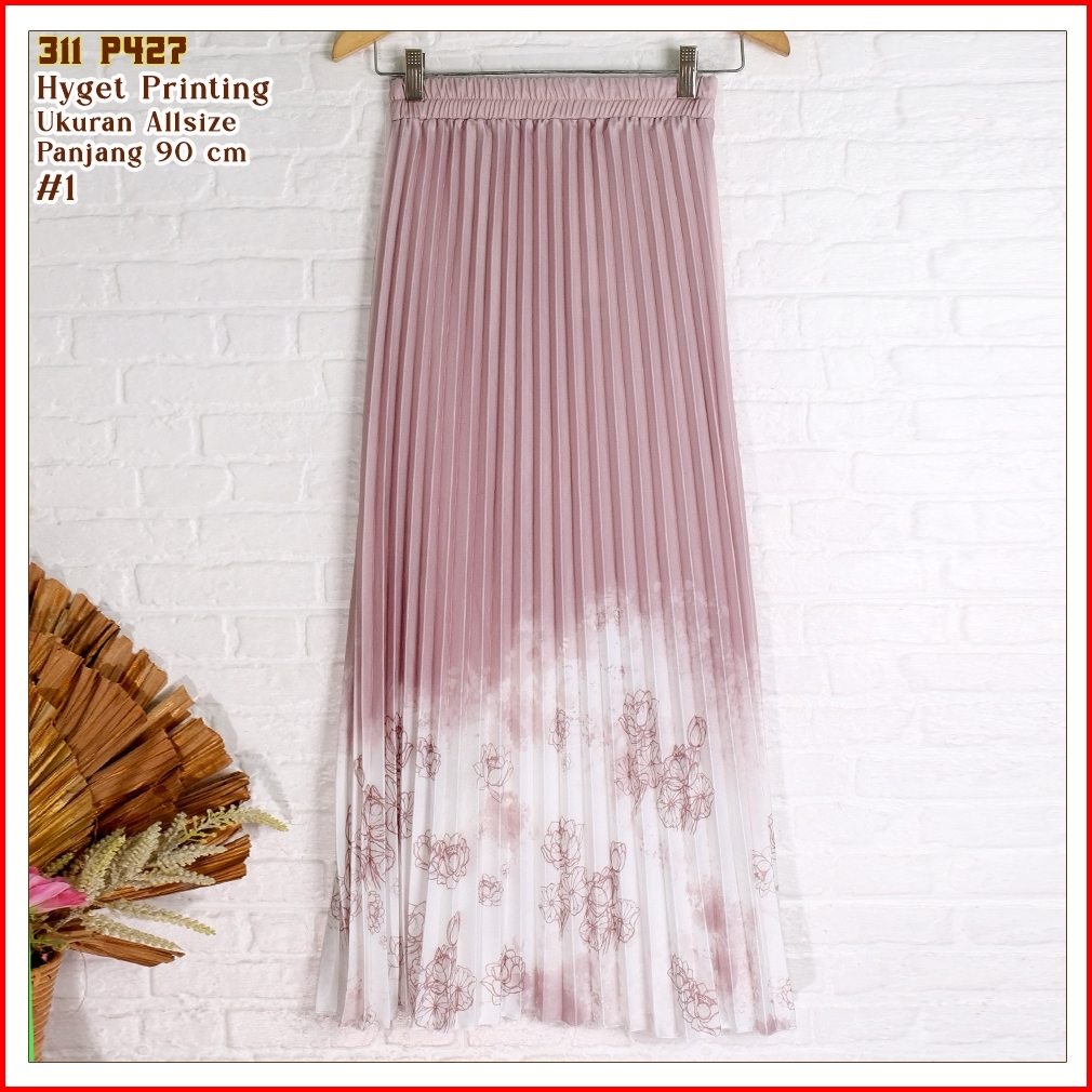 Rok Plisket Hyget Payung Gradasi Motif Bunga - 311 P441 - P425 - P427