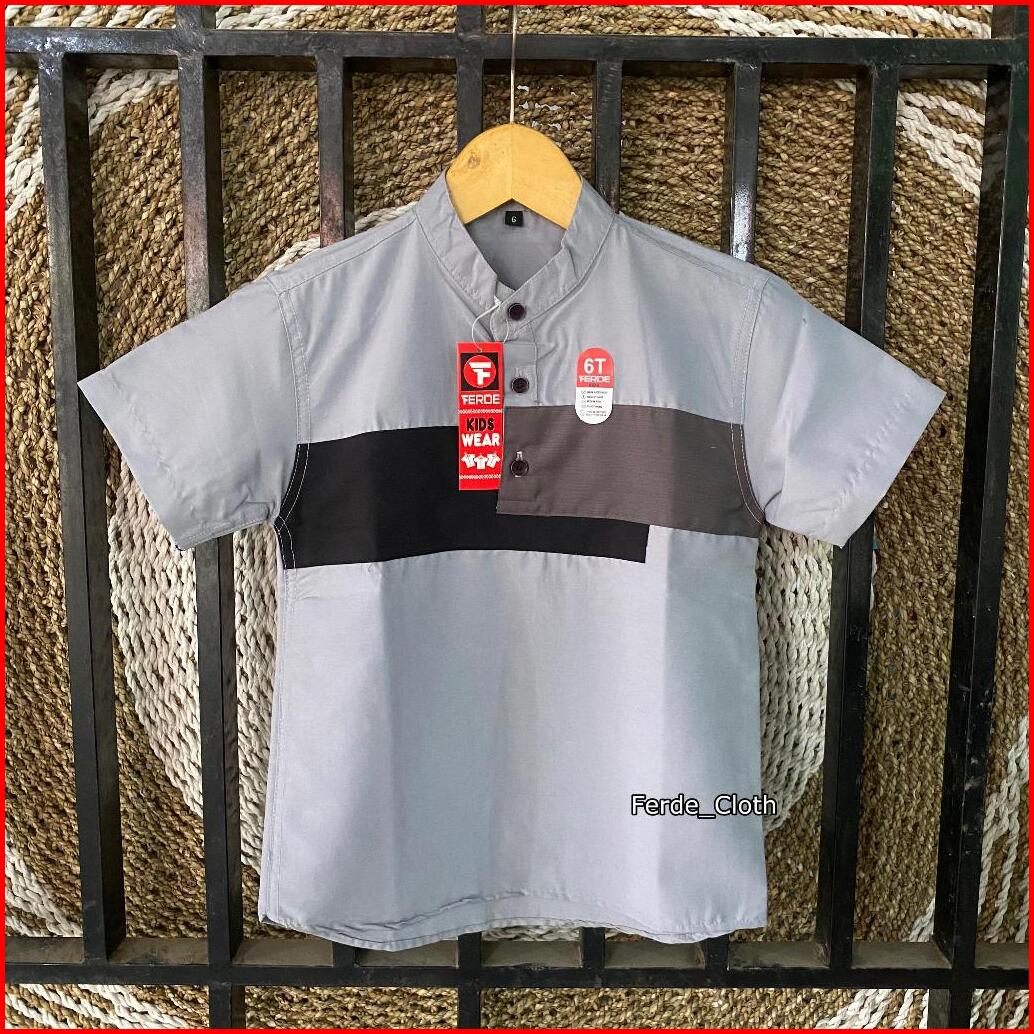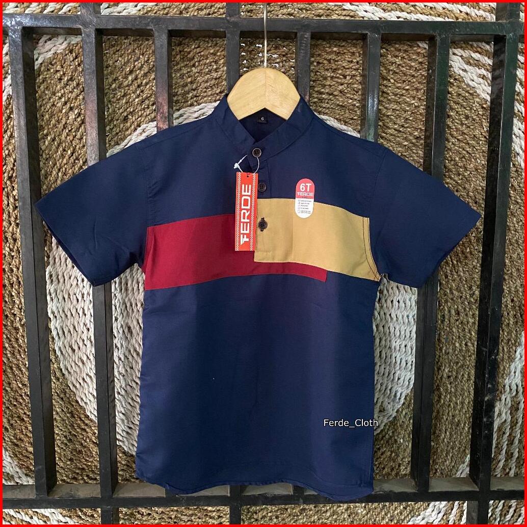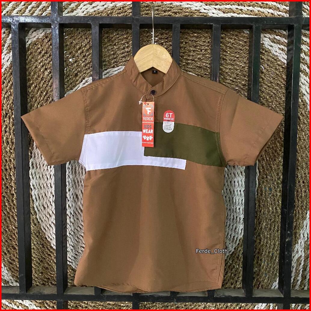 Kemeja Anak Motif Kombinasi Keren Lengan Pendek Casual Usia 2-13 Tahun