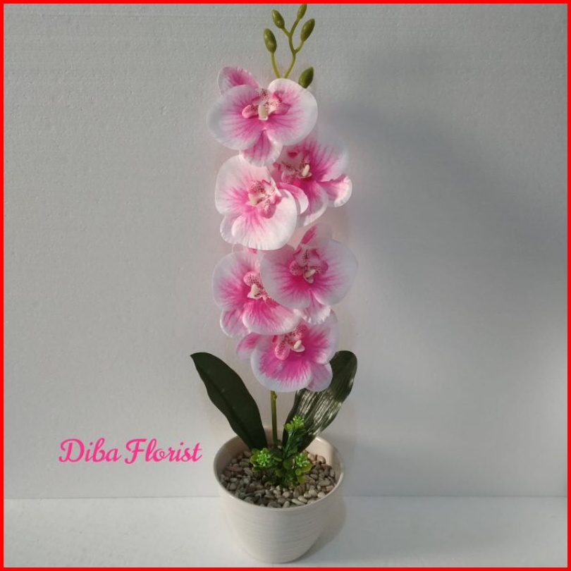 Bunga Hias Meja Anggrek Kain Tebal 1 Cabang Artificial Flower Pot Rangkaian Bunga Dekorasi Ruangan Home Plants