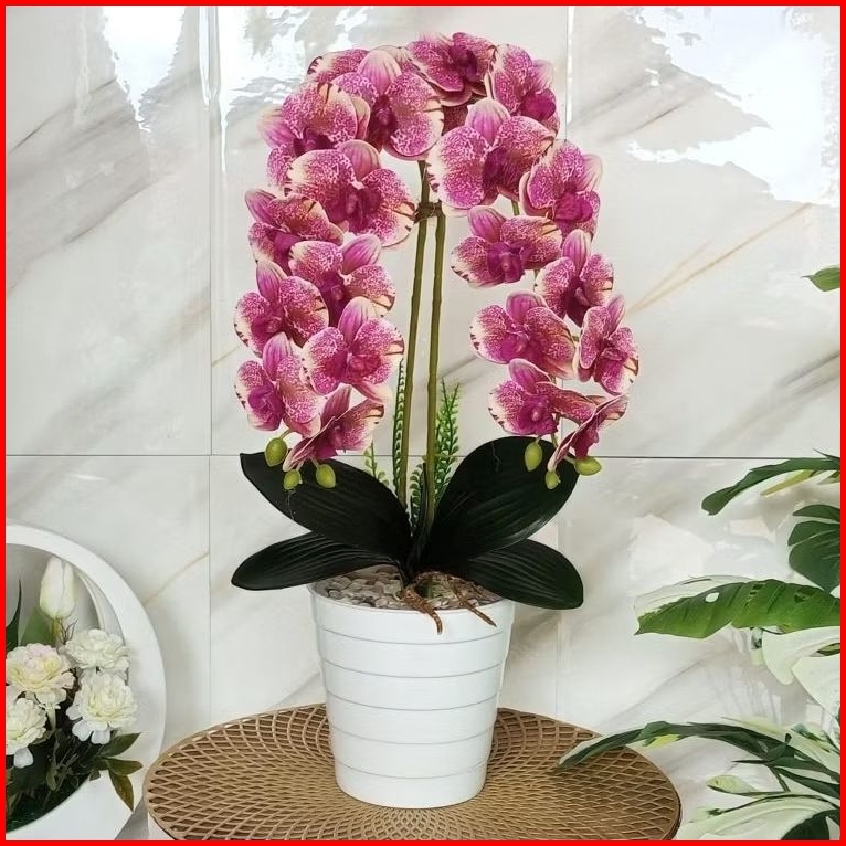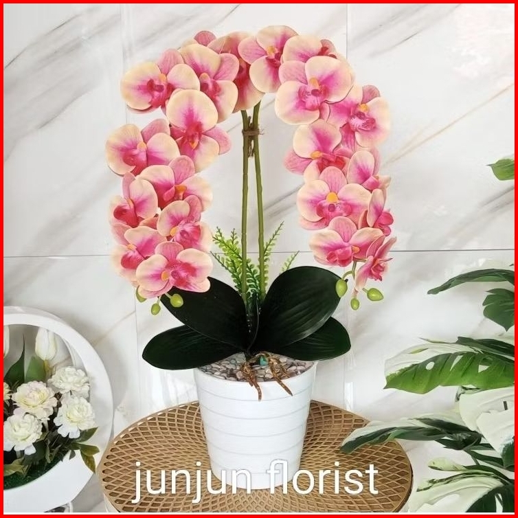 Satu Set Bunga Anggrek Latex Artificial 11 Kuntum Vas Menara