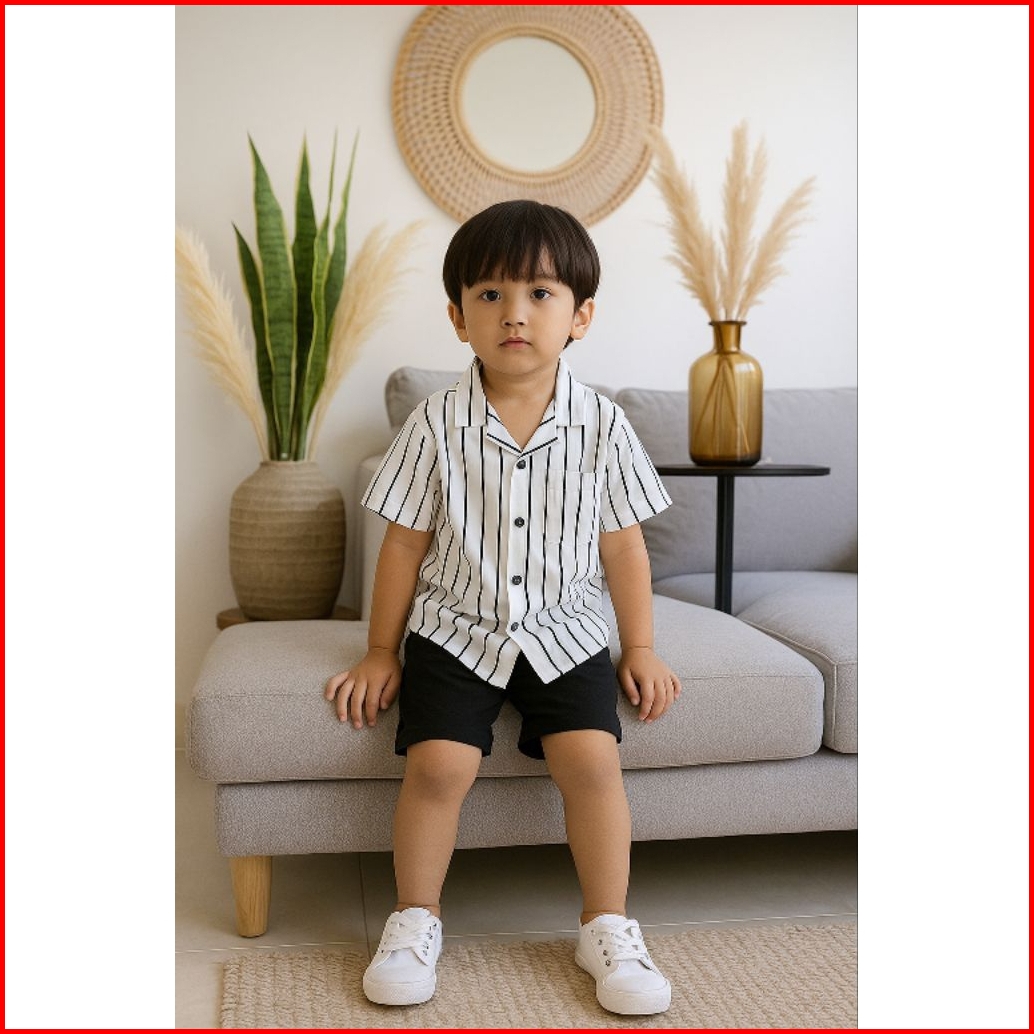 Kemeja Salur Anak Laki-laki 2-10 Tahun Kemeja Anak Laki-laki Model Striped Hitam Putih Untuk Usia 2 Hingga 10 Tahun