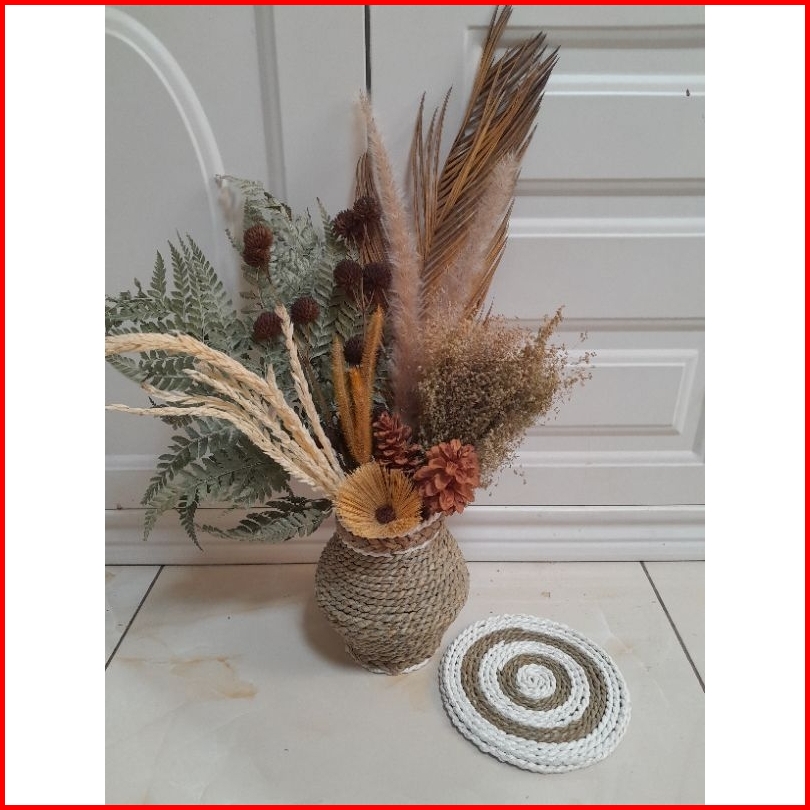 Bunga Kering Hiasan Meja Estetik Dengan Vas Ukuran 15cm