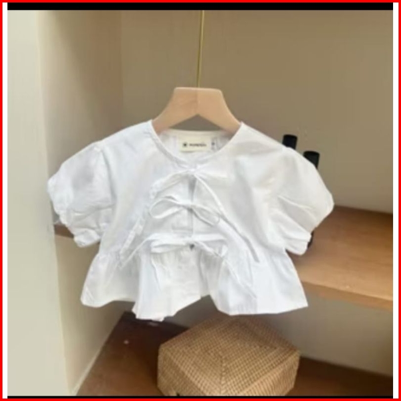 Baju Blues Korea Atasan Kemeja Anak Perempuan Atasan Crop Usia 1-14 Tahun