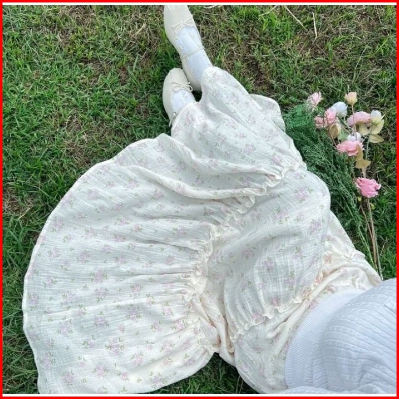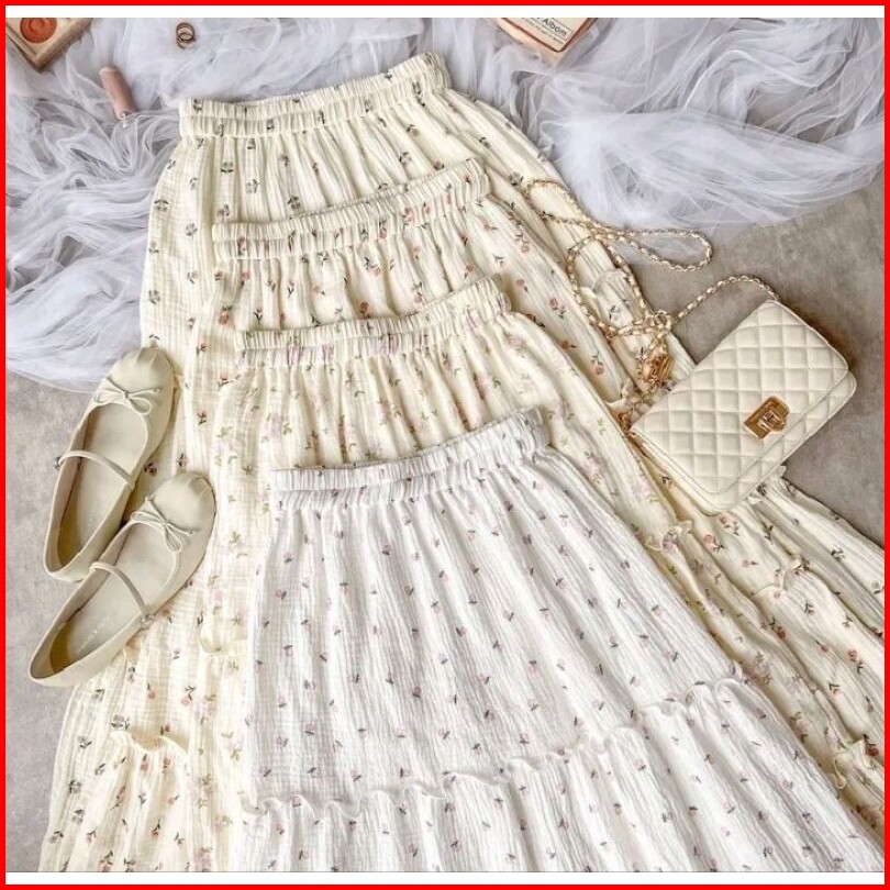 Rok Susun Bunga Ruffle Rok Casual Vintage Korean Style Skirt Flare A Line Rok Panjang Wanita