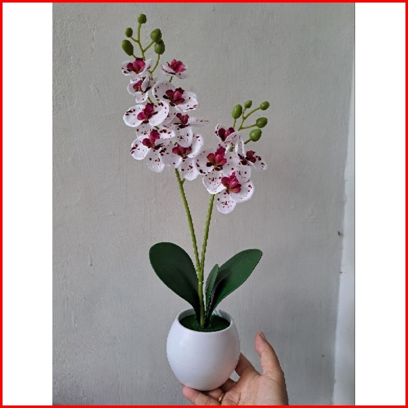 Bunga Anggrek Artificial Berikut Pot Bola Bunga Meja