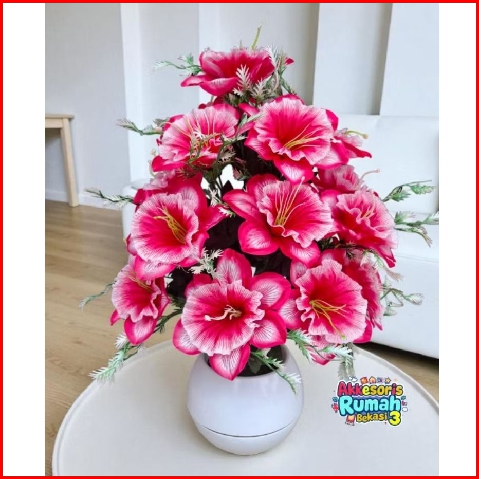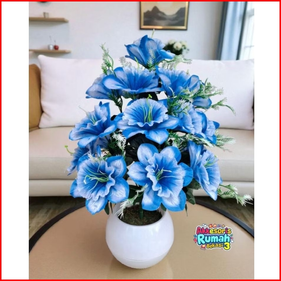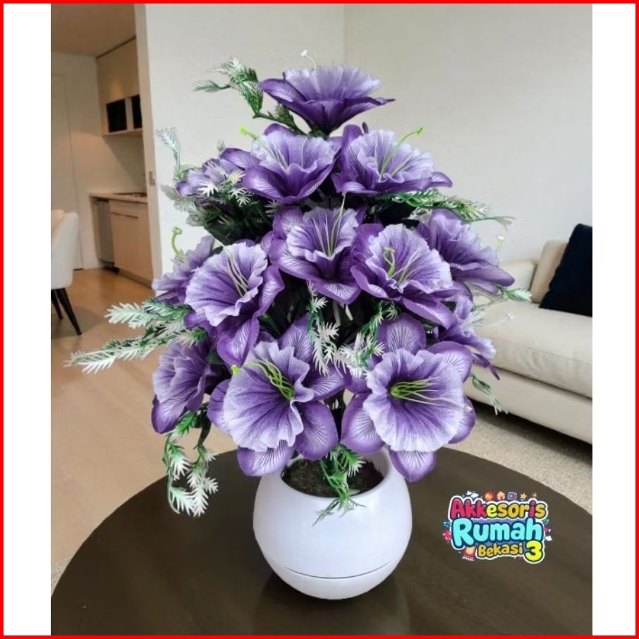Bunga Sudut Gloria Morning Glory Artificial 18 Kuntum Dengan Pot Bola