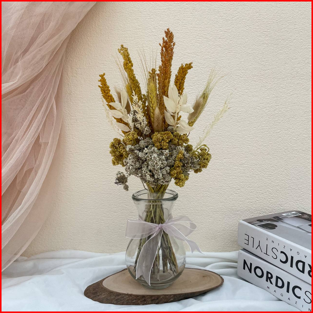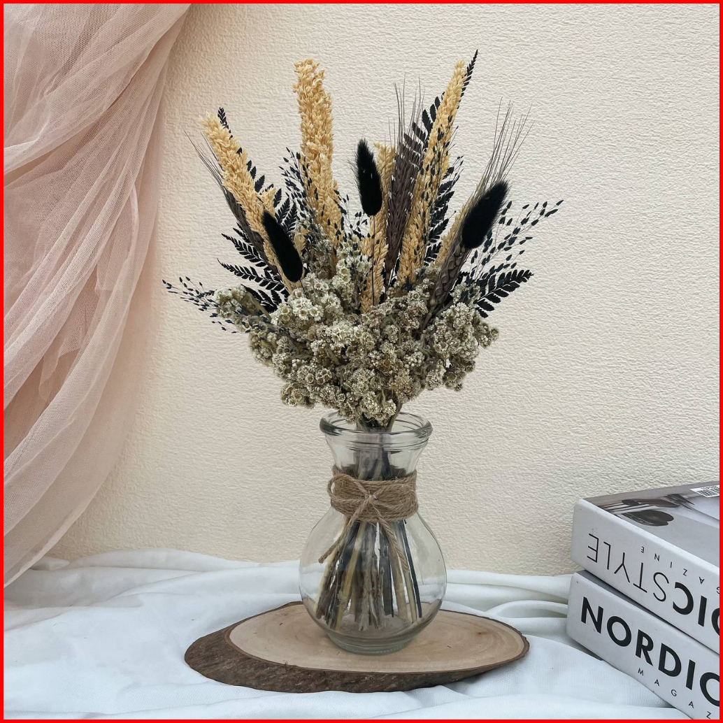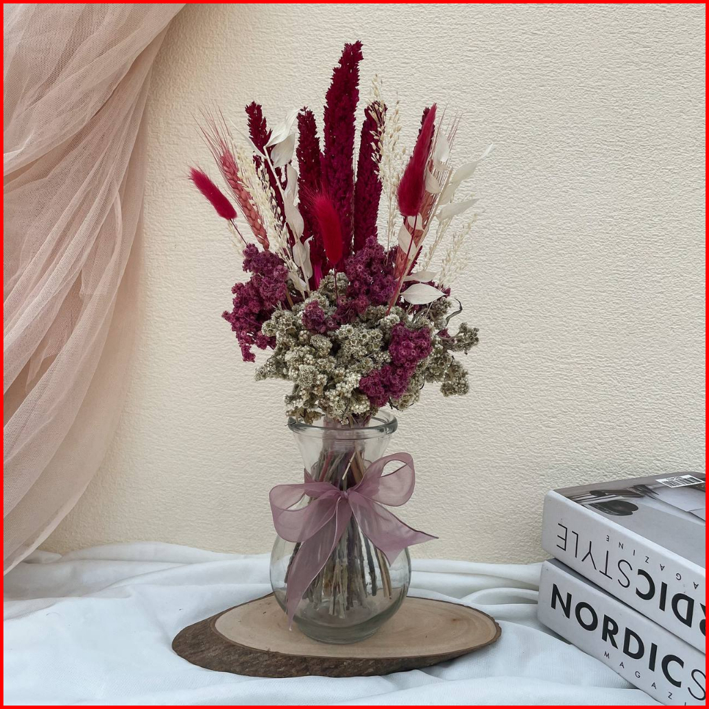 Agnestha Set Satu Set Bunga Kering Bunga Kering Hiasan Meja Dekorasi Ruangan Bunga Meja Proferti Foto Vas Kaca Vas Rotan