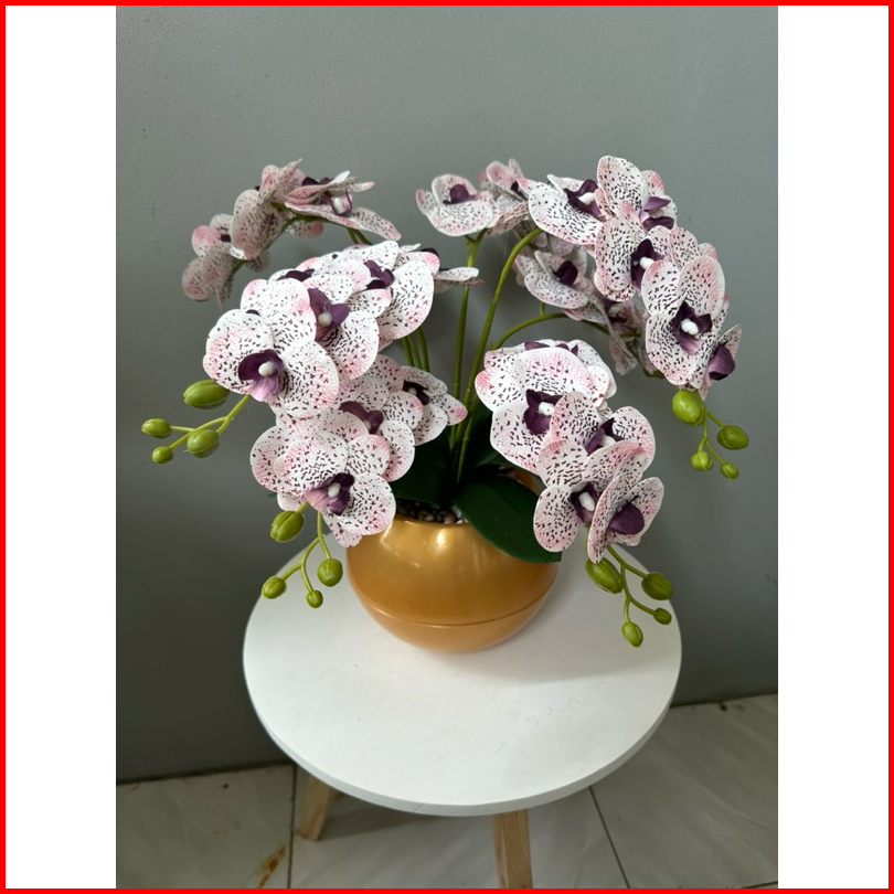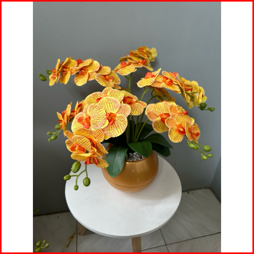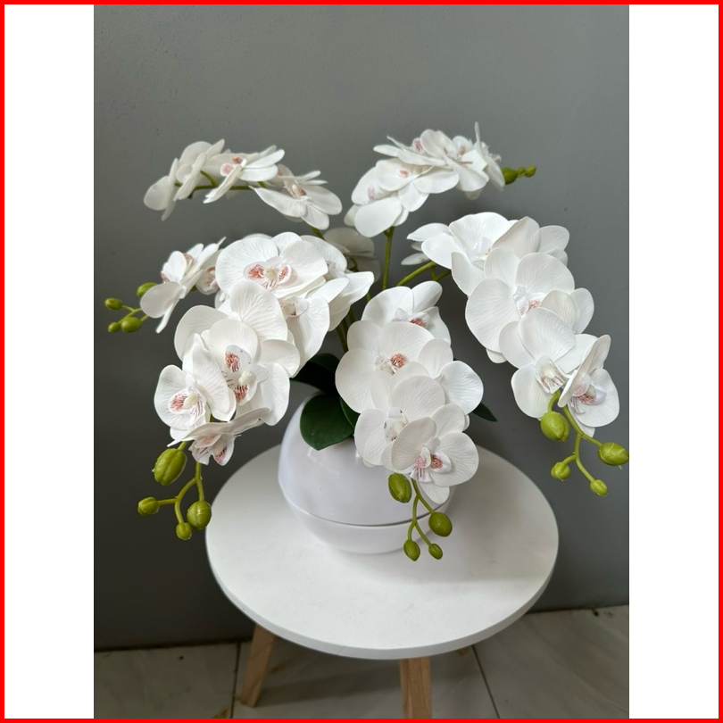 Bunga Anggrek Semi Latex Artificial 4cabang Dengan Pot Bola