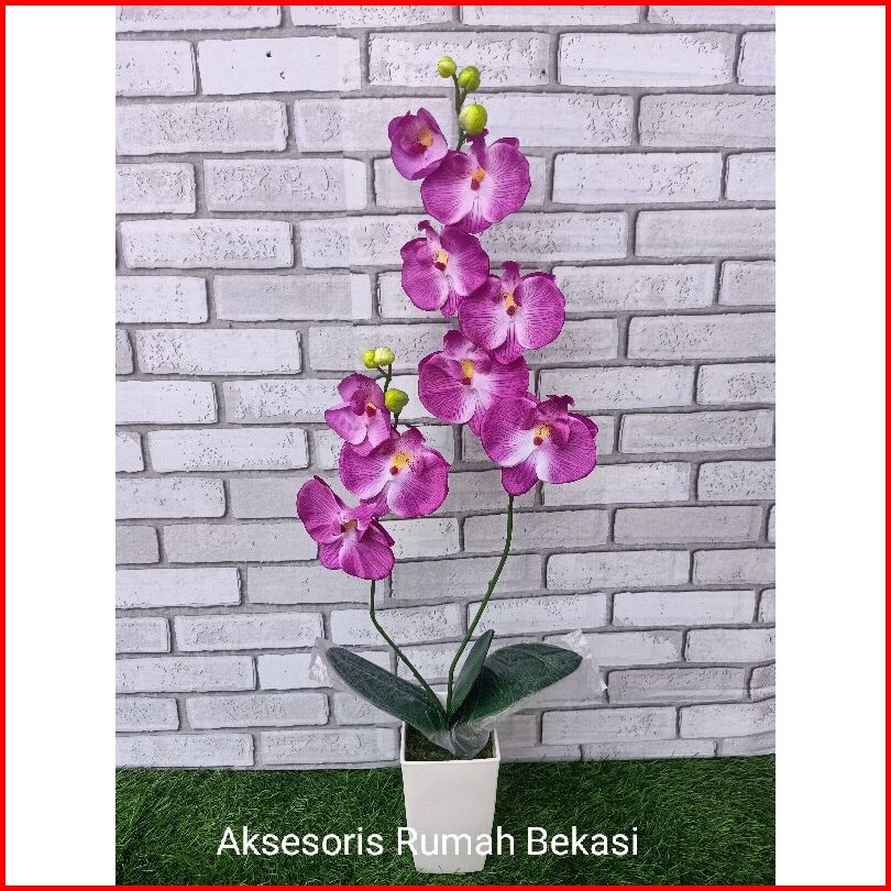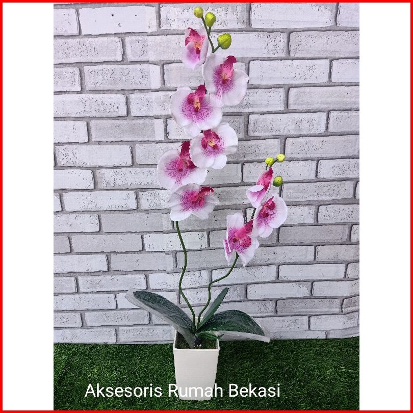 Bunga Anggrek Artificial 2 Cabang Vas Melamin Tirus
