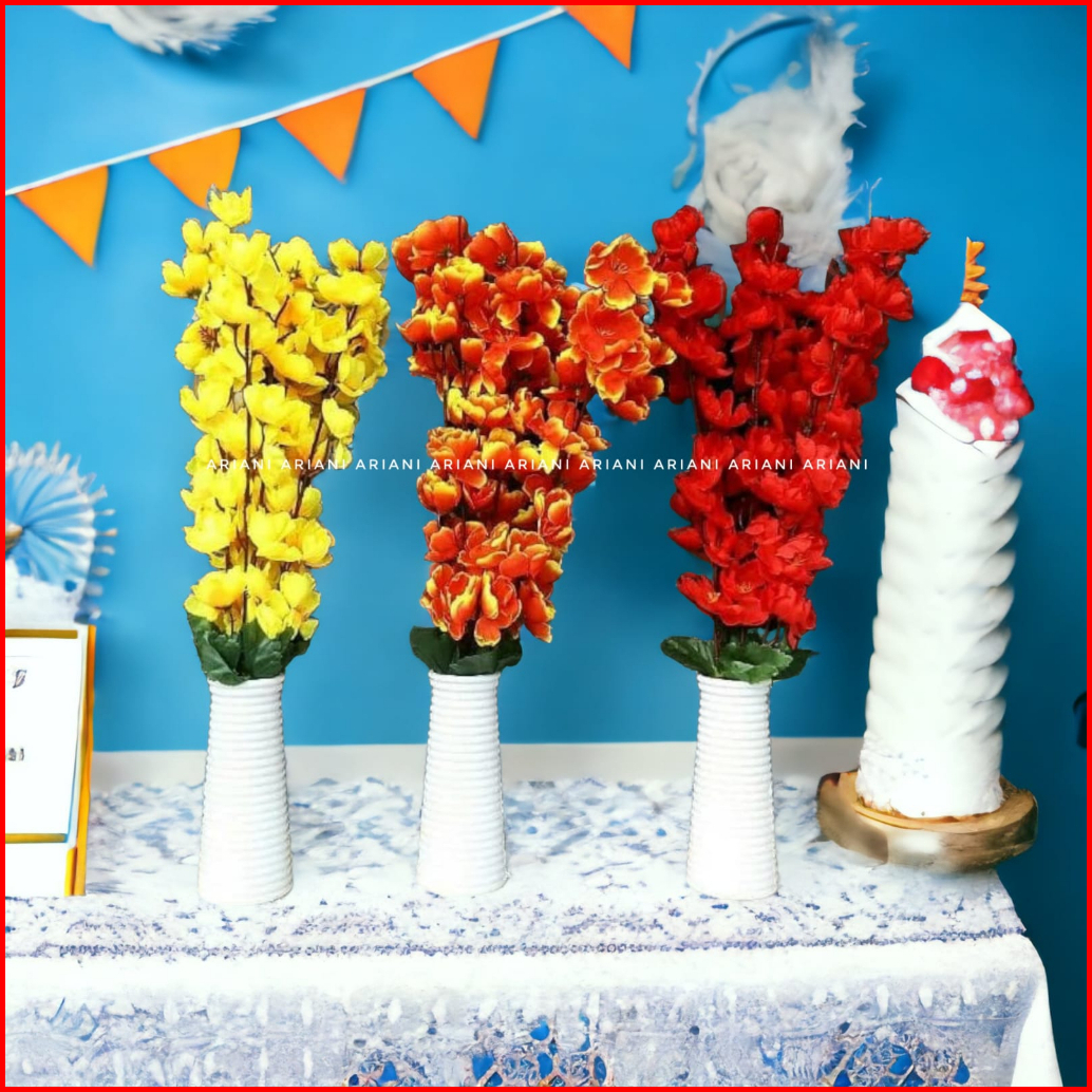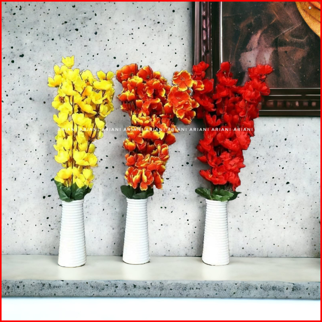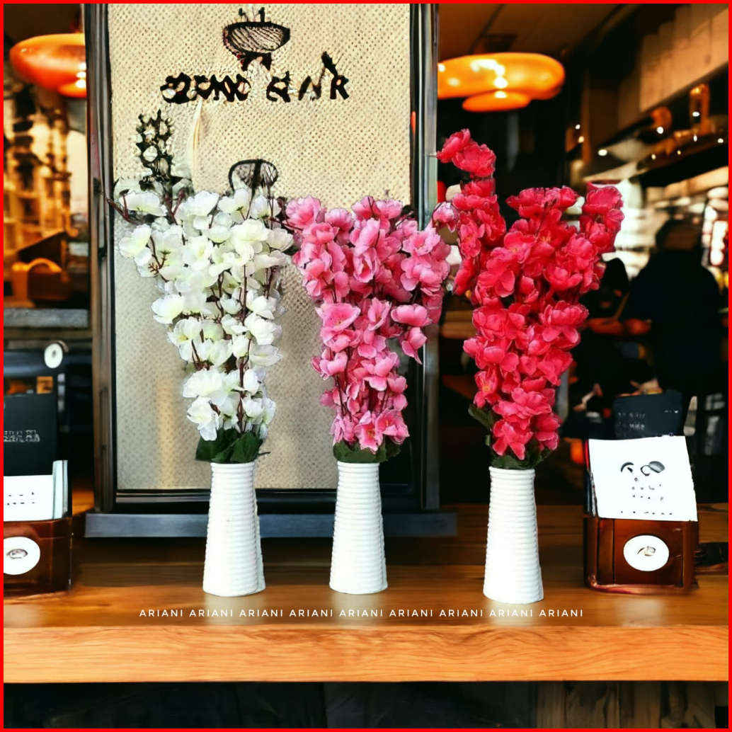 Set Bunga Plastik Cherry Blossom Dengan Pot Melamin Putih Ulir