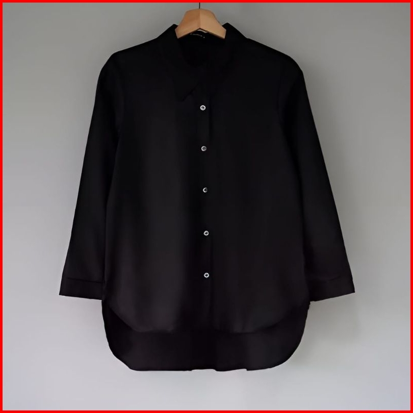 Kemeja Polos Hitam Atasan Anak Perempuan Baju Remaja Tanggung Usia 7-13 Tahun
