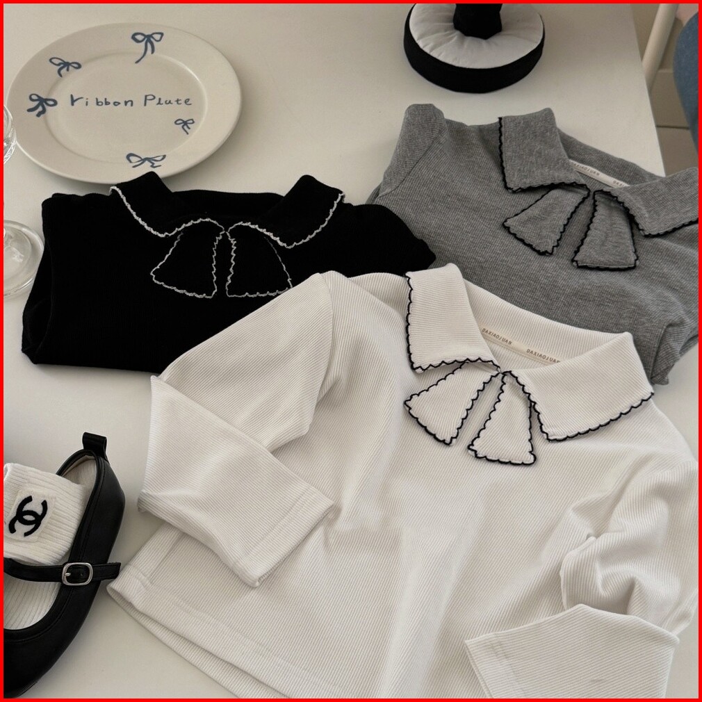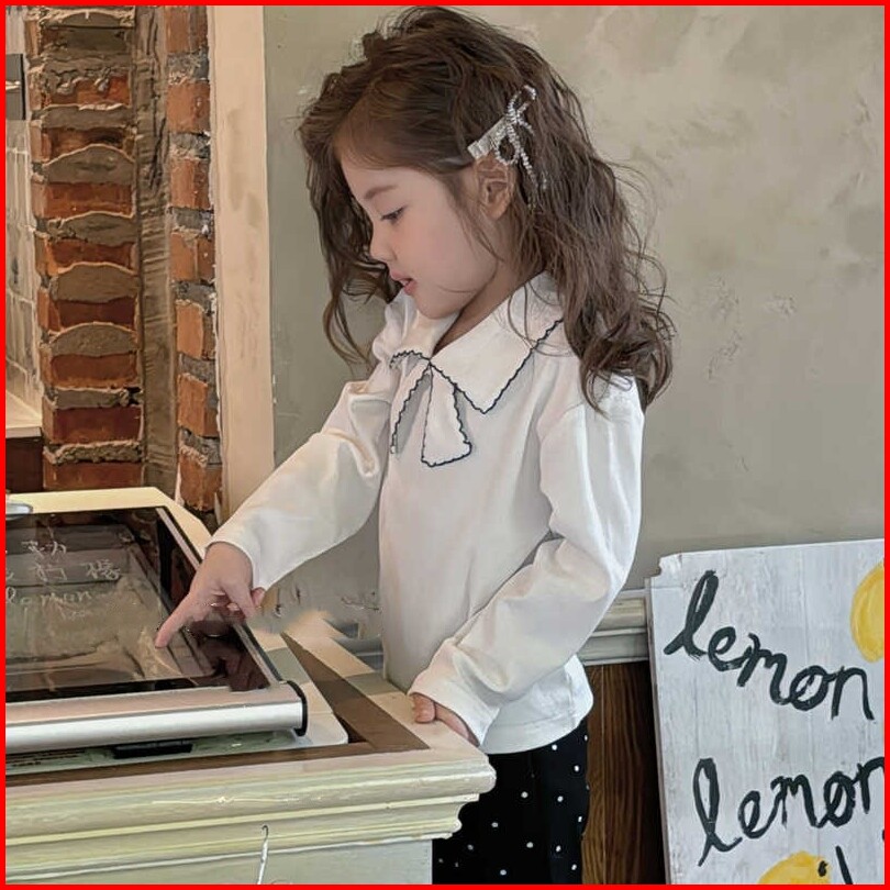 Duniababy 1-9 Tahun Kemeja Bawahan Dasi Kupu-kupu Anak Perempuan Lengan Panjang Atasan Dasi Kupu-kupu Bunga Renda
