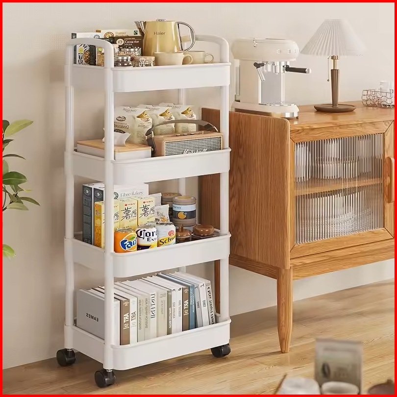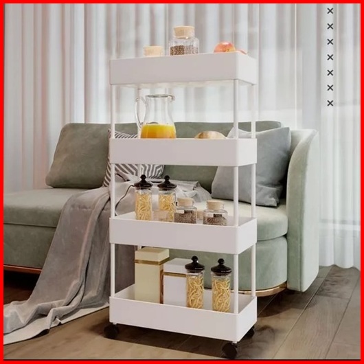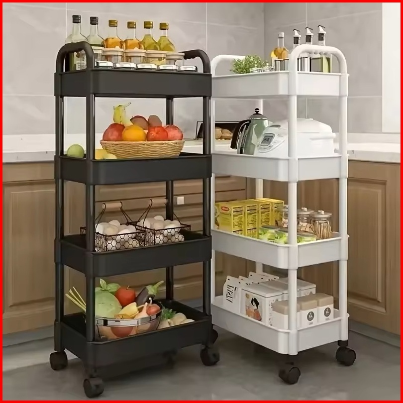 Square Rak Dapur Rak Toilet Rak Susun Serbaguna Rak Dorong Rak Salon Rak Troli 4 Tingkat Dengan Roda
